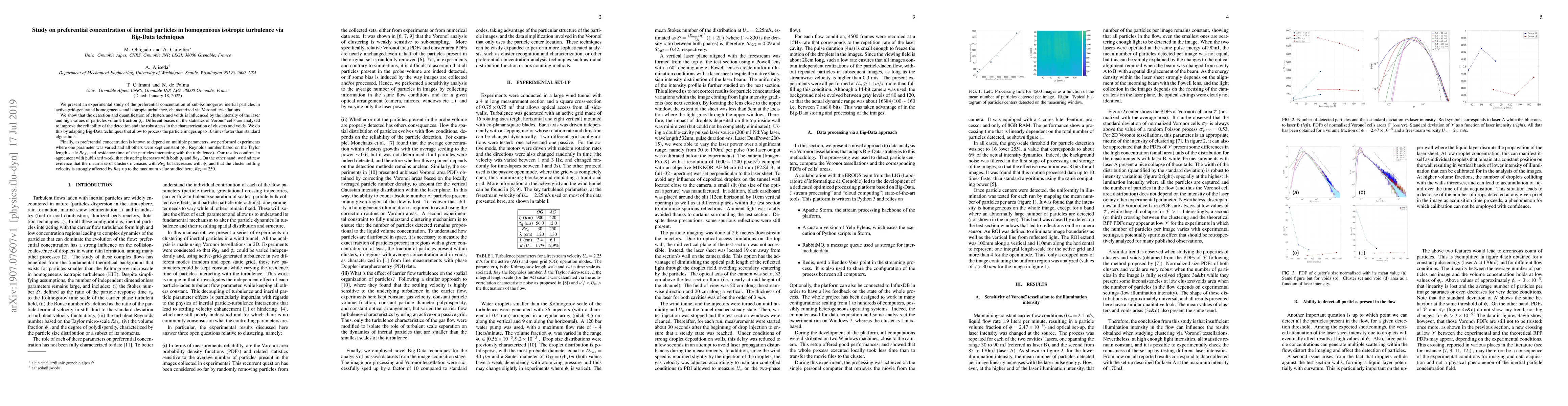 This study experimentally investigates the preferential concentration of inertial particles in turbulence using Vorono\"i tessellations and Big-Data techniques. The research finds that clustering increases with particle volume fraction and Reynolds number, while the mean cluster size decreases with higher particle volume fraction.