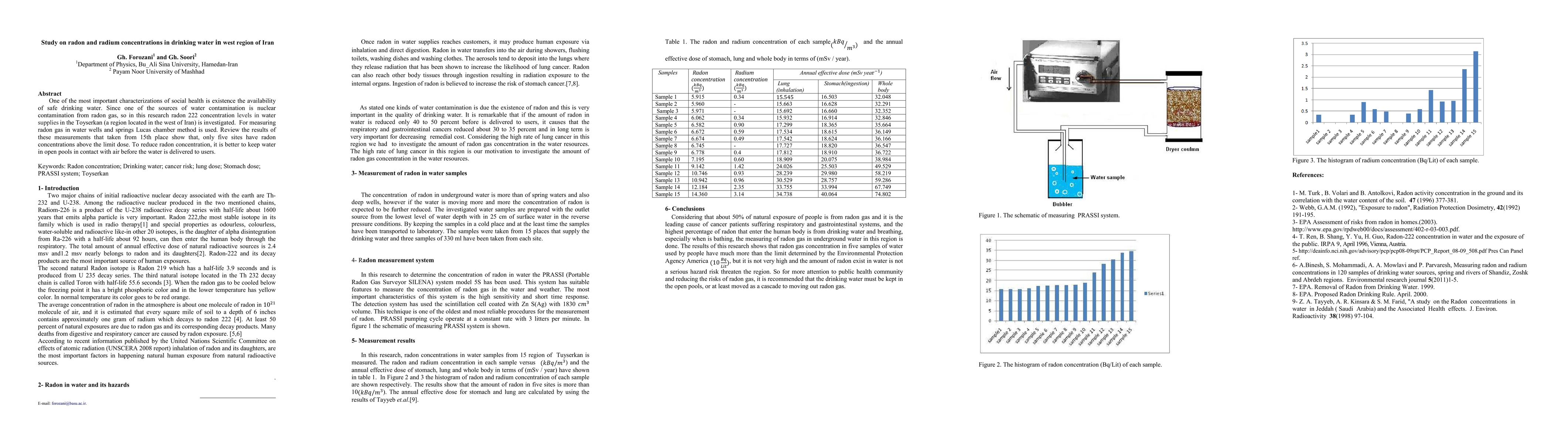 This study investigates radon-222 concentrations in drinking water supplies in the Toyserkan region of western Iran using the Lucas chamber method. Only five out of fifteen sites exceed the recommended radon limit, suggesting that aeration of water before distribution could help reduce radon levels.
