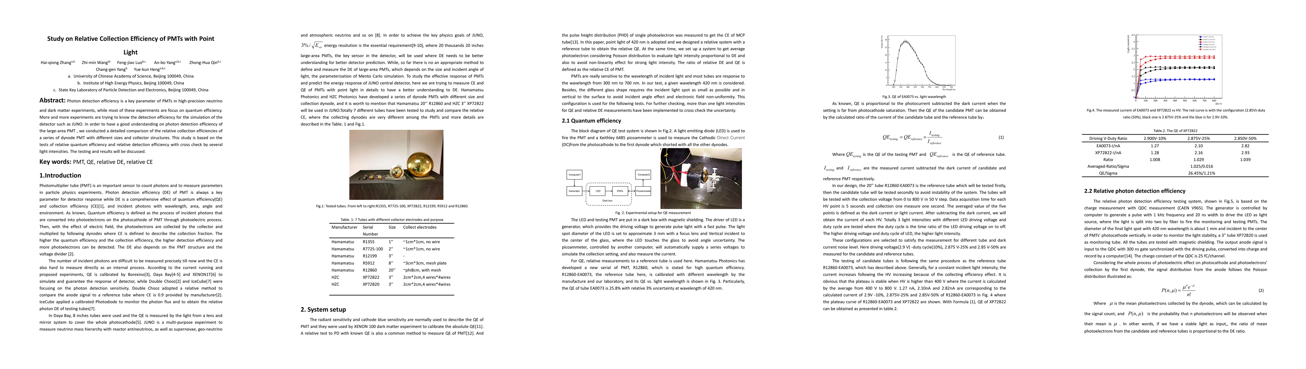 This study compares the relative collection efficiencies of various dynode Photomultiplier Tubes (PMTs) of different sizes and structures, crucial for high-precision neutrino and dark matter experiments like JUNO. The research is based on tests of relative quantum and detection efficiencies under multiple light intensities, aiming to understand large-area PMT photon detection efficiency better.