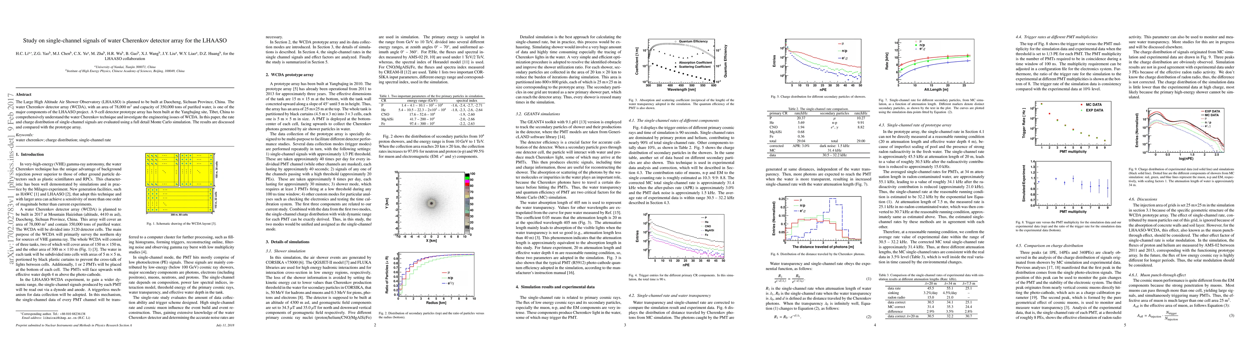 The Large High Altitude Air Shower Observatory (LHAASO) is planned to be built at Daocheng, Sichuan Province, China. The water Cherenkov detector array (WCDA), with an area of 78,000 m2 and capacity of 350,000 tons of purified water, is one of the major components of the LHAASO project. A 9-cell detector prototype array has been built at the Yangbajing site, Tibet, China to comprehensively understand the water Cherenkov technique and investigate the engineering issues of WCDA. In this paper, the rate and charge distribution of single-channel signals are evaluated using a full detail Monte Carlo simulation. The results are discussed and compared with the prototype array.