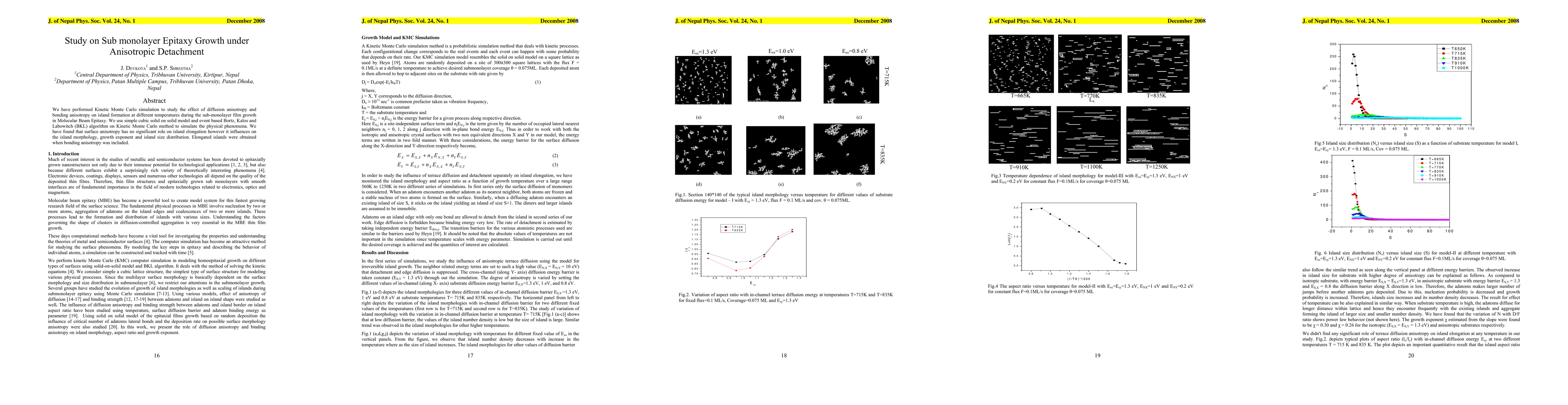 We have performed Kinetic Monte Carlo simulation to study the effect of diffusion anisotropy and bonding anisotropy on island formation at different temperatures during the sub-monolayer film growth in Molecular Beam Epitaxy. We use simple cubic solid on solid model and event based Bortz, Kalos and Labowitch (BKL) algorithm on Kinetic Monte Carlo method to simulate the physical phenomena. We have found that surface anisotropy has no significant role on island elongation however it influences on the island morphology, growth exponent and island size distribution. Elongated islands were obtained when bonding anisotropy was included.