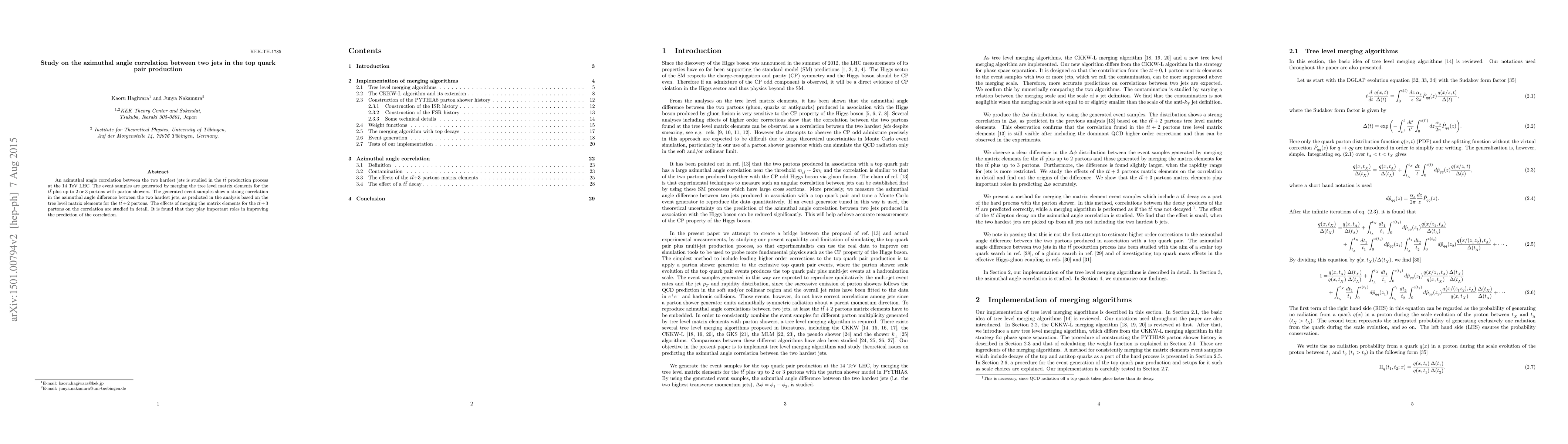 Researchers studied the correlation between two jets in top quark pair production at the LHC, finding a strong correlation in their azimuthal angle difference, and discovered that including more partons improves this prediction.