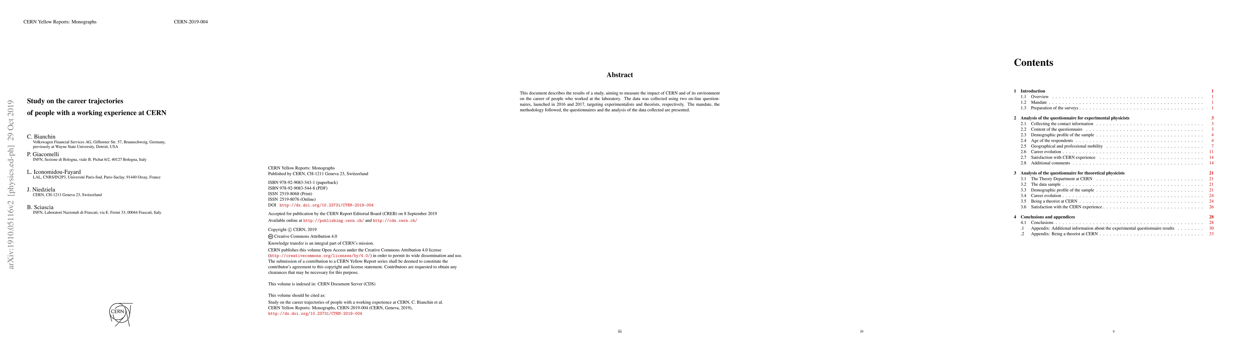 This document describes the results of a study, aiming to measure the impact of CERN and of its environment on the career of people who worked at the laboratory. The data was collected using two on-line questionnaires, launched in 2016 and 2017, targeting experimentalists and theorists, respectively. The mandate, the methodology followed, the questionnaires and the analysis of the data collected are presented.
