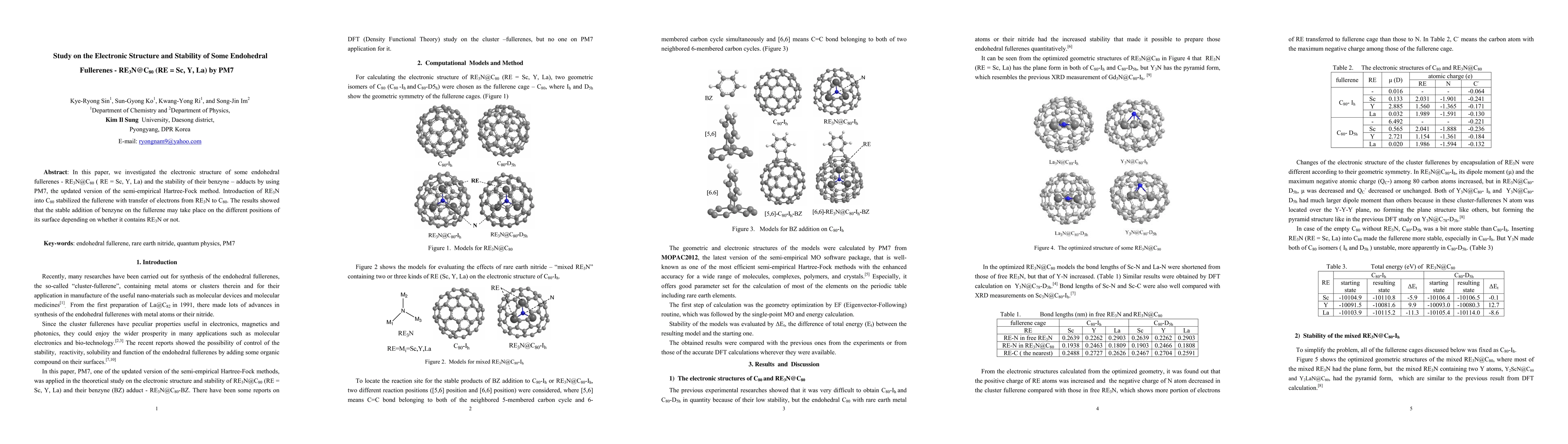 In this paper, we investigated the electronic structure of some endohedral fullerenes containing rare earth nitride and the stability of their benzyne-adducts by PM7, the semiempirical Hatree-Fock method.