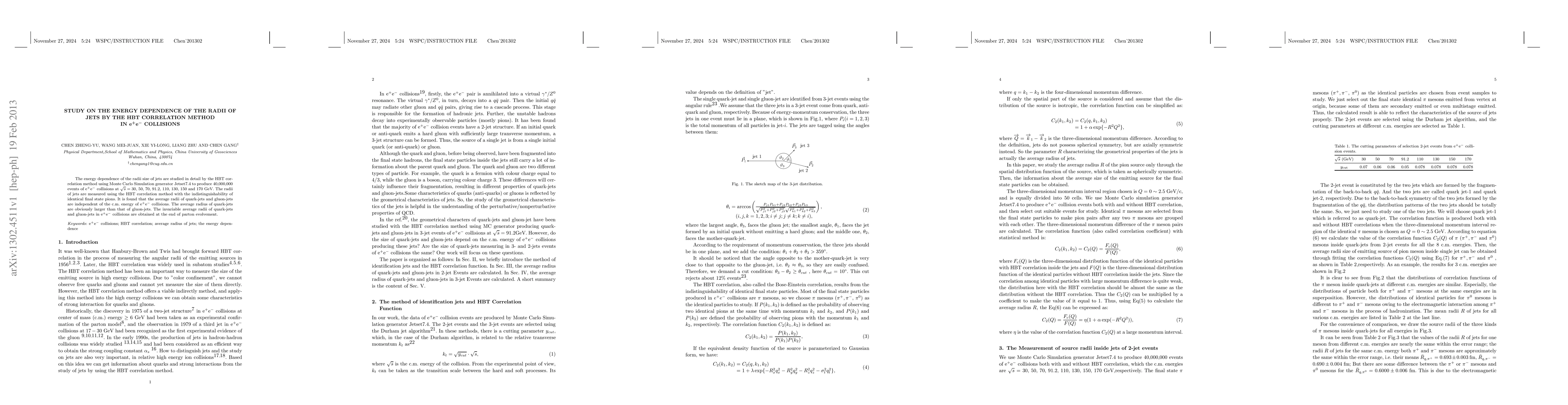 This study investigates how the size of jets in e+e- collisions changes with energy using the HBT correlation method. It finds that quark-jets and gluon-jets have independent average radii that remain constant regardless of energy.