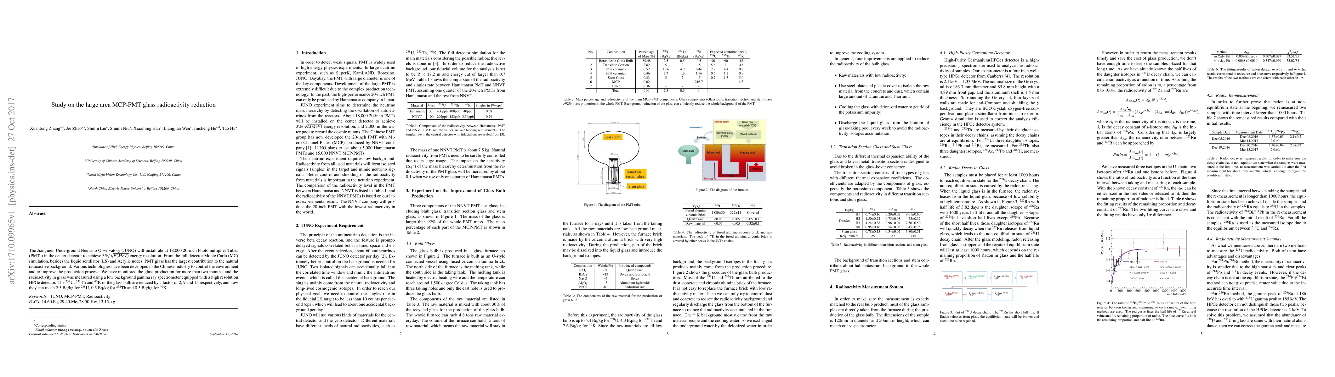 Researchers found that glass radioactivity in PMTs can be reduced by a factor of 2-15 through improved production processes, allowing for lower background radiation levels in the JUNO detector.