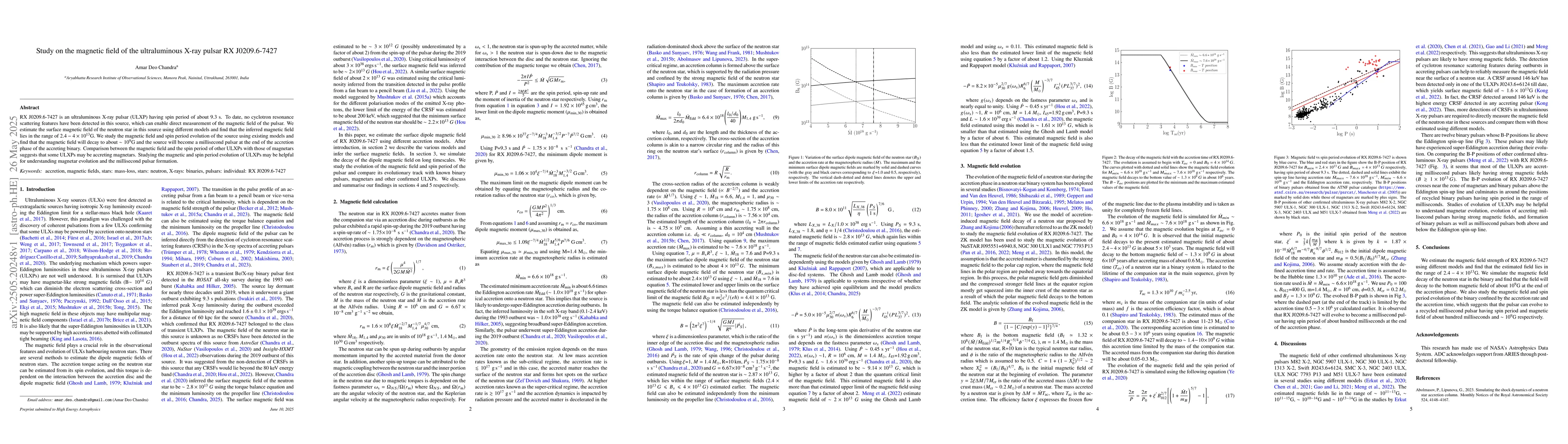 The research estimates the surface magnetic field of the neutron star in RX J0209.6-7427 using different models without direct measurement via cyclotron resonance scattering features.