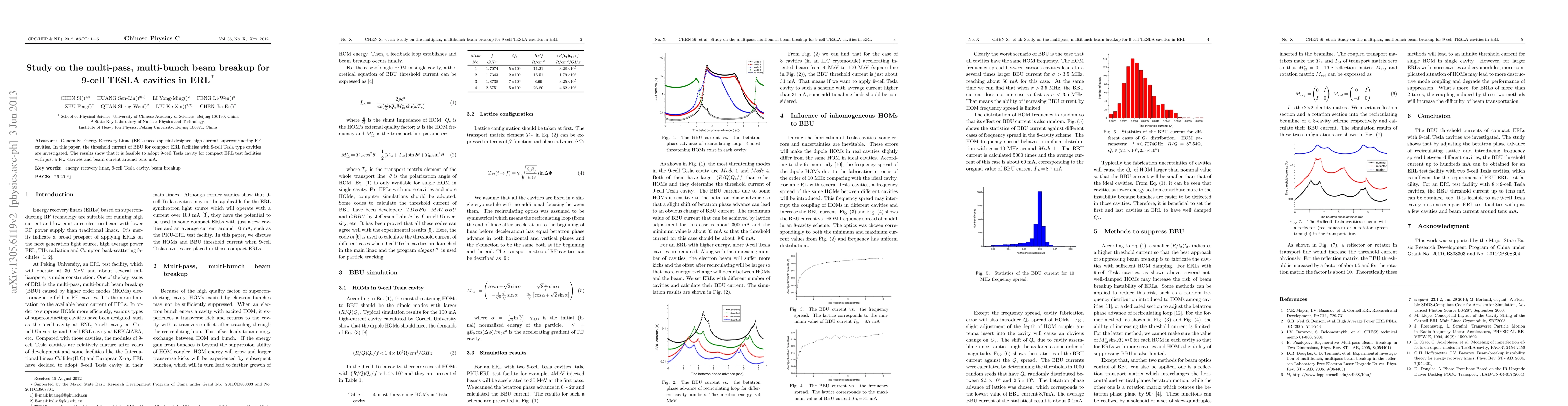This study investigates the threshold current for multi-pass, multi-bunch beam breakup in 9-cell TESLA cavities for Energy Recovery Linac (ERL) facilities. Results indicate that 9-cell TESLA cavities are feasible for compact ERL test setups with low beam currents around tens of milliamperes.