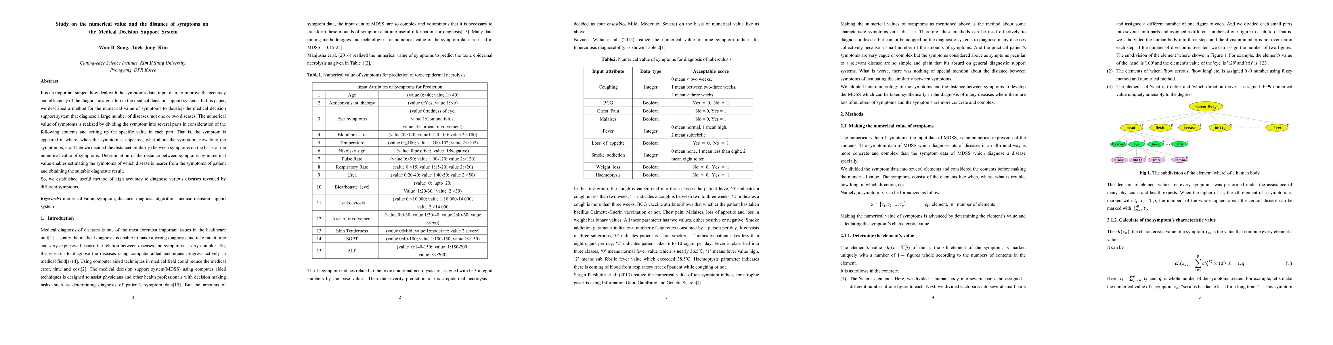 This paper proposes a method to assign numerical values to symptoms based on their characteristics (e.g., location, timing, duration) to enhance the diagnostic accuracy of a medical decision support system. The method calculates the distance between symptoms to determine which diseases are most likely, thereby improving the system's ability to diagnose a wide range of conditions.