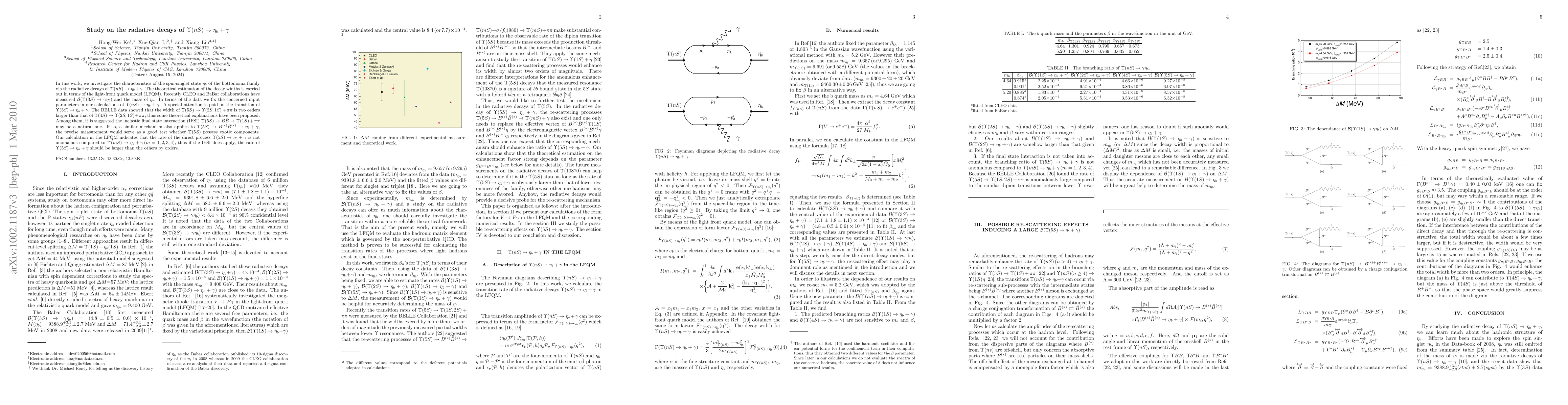 In this work, we investigate the characteristics of the spin-singlet state $\eta_b$ of the bottomonia family via the radiative decays of $\Upsilon(nS)\to \eta_b+\gamma$. The theoretical estimation of the decay widths is carried out in terms of the light-front quark model (LFQM). Recently CLEO and BaBar collaborations have measured $\mathcal{B}(\Upsilon(3S)\to\gamma\eta_b)$ and the mass of ${\eta_b}$. In terms of the data we fix the concerned input parameters in our calculations of $\Upsilon(nS)\to \eta_b+\gamma$. A special attention is paid on the transition of $\Upsilon(5S)\to \eta_b+\gamma$. The BELLE data showed that the width of $\Upsilon(5S)\to \Upsilon(2S,1S)+\pi\pi$ is two orders larger than that of $\Upsilon(4S)\to \Upsilon(2S,1S)+\pi\pi$, thus some theoretical explanations have been proposed. Among them, it is suggested the inelastic final state interaction (IFSI) $\Upsilon(5S)\to B\bar B\to \Upsilon(1S)+\pi\pi$ may be a natural one. If so, a similar mechanism also applies to $\Upsilon(5S)\to B^{(*)}\bar B^{(*)}\to \eta_b+\gamma$, the precise measurement would serve as a good test whether $\Upsilon(5S)$ possess exotic components. Our calculation in the LFQM indicates that the rate of the direct process $\Upsilon(5S)\to\eta_b+\gamma$ is not anomalous compared to $\Upsilon(mS)\to\eta_b+\gamma (m=1,2,3,4)$, thus if the IFSI does apply, the rate of $\Upsilon(5S)\to\eta_b+\gamma$ should be larger than the others by orders.