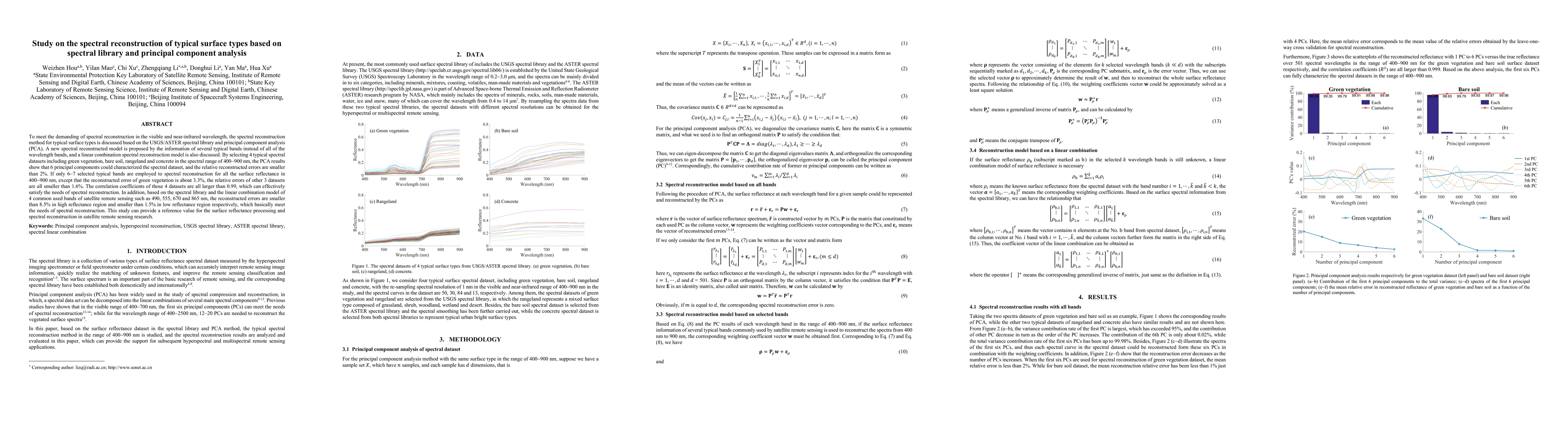 Researchers developed a method for reconstructing surface types from spectral data using PCA and a spectral library, achieving errors smaller than 2% in reconstruction and correlation coefficients larger than 0.99.