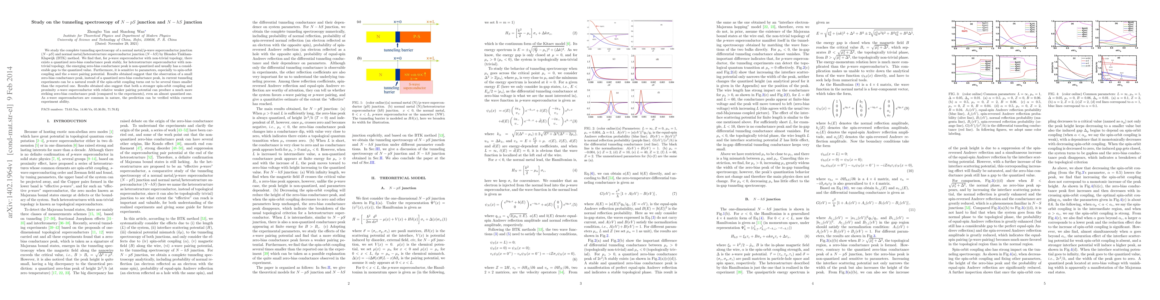The paper provides a detailed analysis of tunneling spectroscopy in N-pS and N-hS junctions using the BTK method, revealing distinct behaviors of zero-bias conductance peaks in p-wave and heterostructure superconductors.