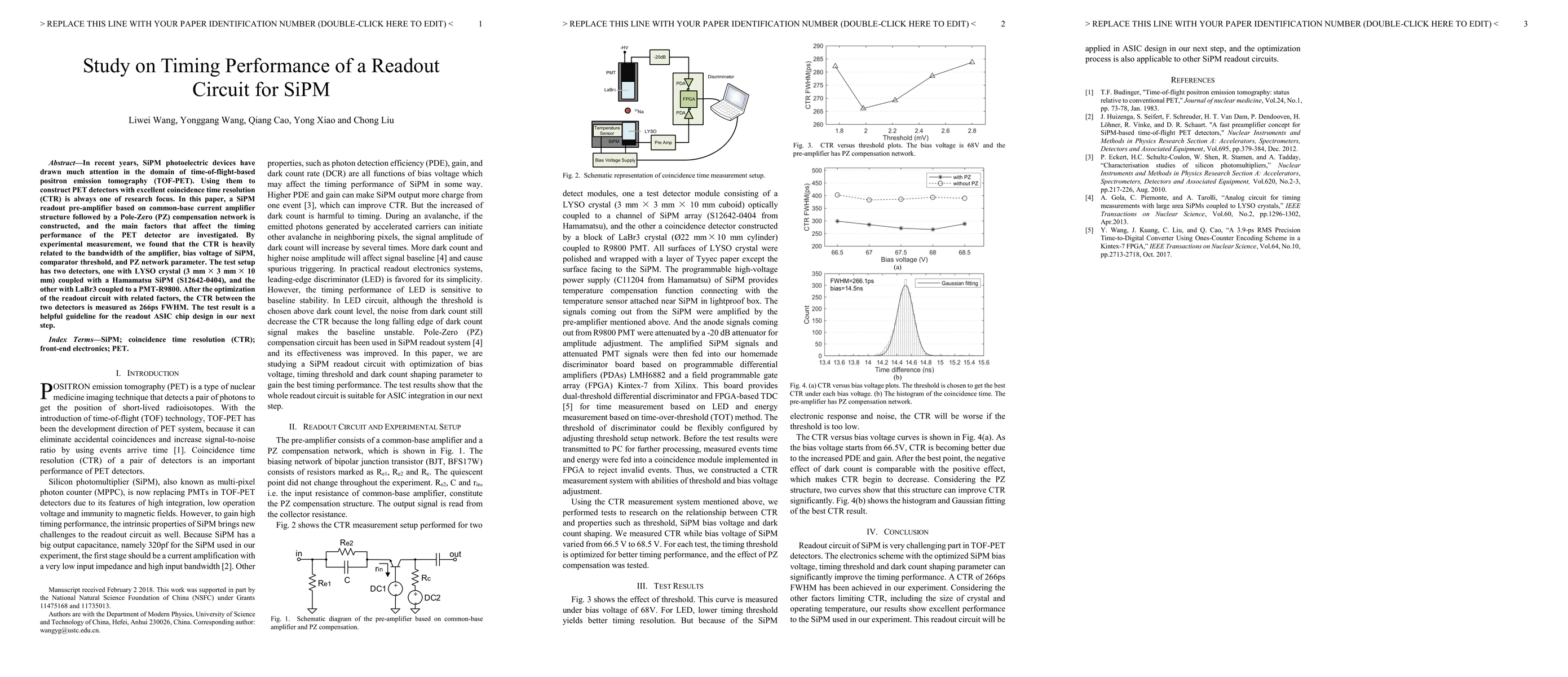 This paper investigates the timing performance of a SiPM readout circuit for PET detectors, focusing on factors like amplifier bandwidth, bias voltage, and comparator threshold. Optimized circuit design achieves a coincidence time resolution of 266ps FWHM, providing valuable insights for future readout ASIC chip designs.