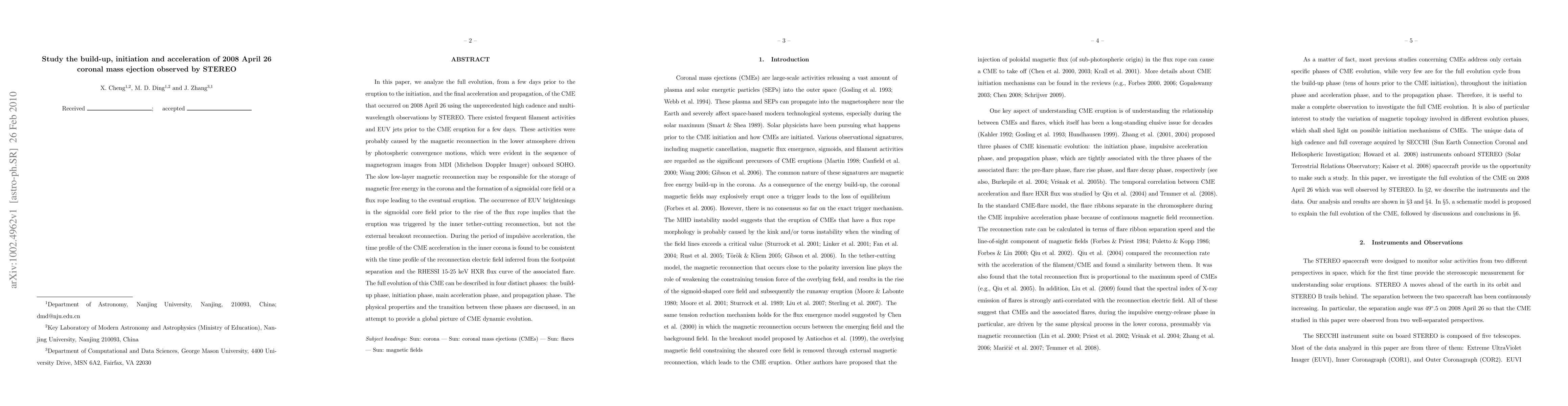 In this paper, we analyze the full evolution, from a few days prior to the eruption to the initiation, and the final acceleration and propagation, of the CME that occurred on 2008 April 26 using the unprecedented high cadence and multi-wavelength observations by STEREO. There existed frequent filament activities and EUV jets prior to the CME eruption for a few days. These activities were probably caused by the magnetic reconnection in the lower atmosphere driven by photospheric convergence motions, which were evident in the sequence of magnetogram images from MDI (Michelson Doppler Imager) onboard SOHO. The slow low-layer magnetic reconnection may be responsible for the storage of magnetic free energy in the corona and the formation of a sigmoidal core field or a flux rope leading to the eventual eruption. The occurrence of EUV brightenings in the sigmoidal core field prior to the rise of the flux rope implies that the eruption was triggered by the inner tether-cutting reconnection, but not the external breakout reconnection. During the period of impulsive acceleration, the time profile of the CME acceleration in the inner corona is found to be consistent with the time profile of the reconnection electric field inferred from the footpoint separation and the RHESSI 15-25 keV HXR flux curve of the associated flare. The full evolution of this CME can be described in four distinct phases: the build-up phase, initiation phase, main acceleration phase, and propagation phase. The physical properties and the transition between these phases are discussed, in an attempt to provide a global picture of CME dynamic evolution.