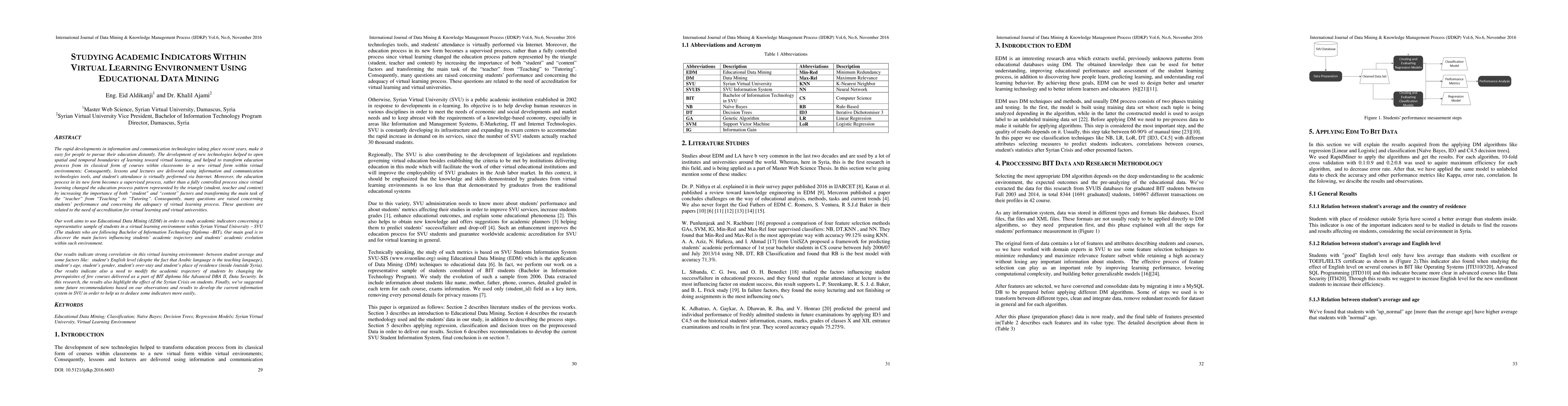 Our main goal is to discover the main factors influencing students' academic trajectory and students' academic evolution within such environment. Our results indicate strong correlation in this virtual learning environment between student average and some factors like: student's English level (despite the fact that Arabic language is the teaching language), student's age, student's gender, student's over-stay and student's place of residence (inside or outside Syria). Our results indicate also a need to modify the academic trajectory of students by changing the prerequisites of few courses delivered as a part of BIT diploma like Advanced DBA II, Data Security. In this research, the results also highlight the effect of the Syrian Crisis on students. Finally, we've suggested some future recommendations based on our observations and results to develop the current information system in SVU in order to help us to deduce some indicators more easily.