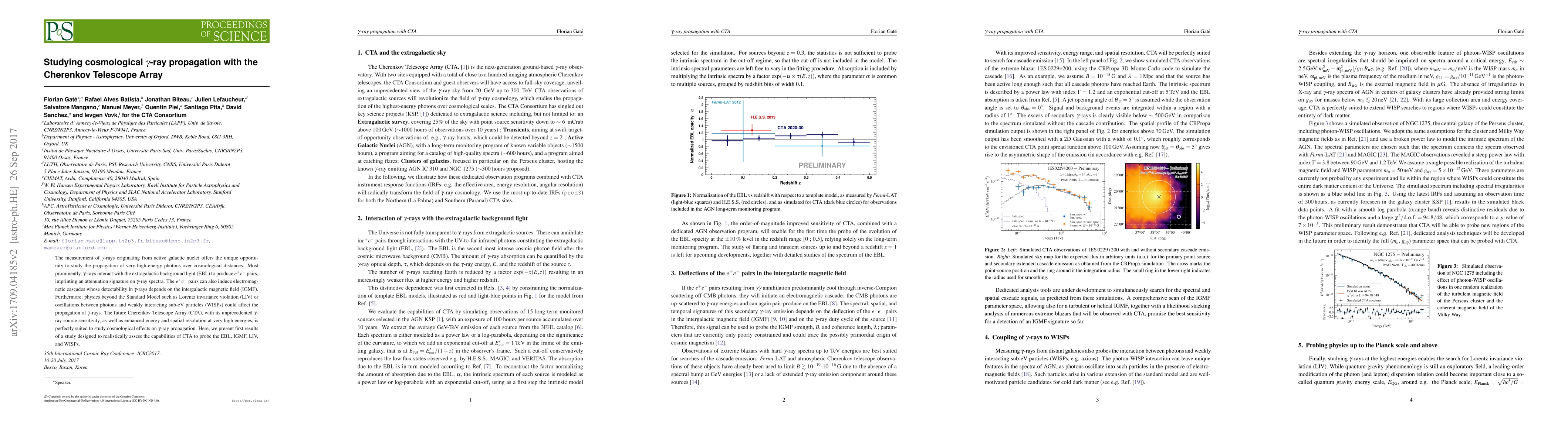 This paper investigates the capabilities of the Cherenkov Telescope Array (CTA) to study the propagation of very-high-energy gamma rays, focusing on interactions with the extragalactic background light, intergalactic magnetic fields, and potential physics beyond the Standard Model. Initial results highlight CTA's potential for probing cosmological effects on gamma-ray propagation.