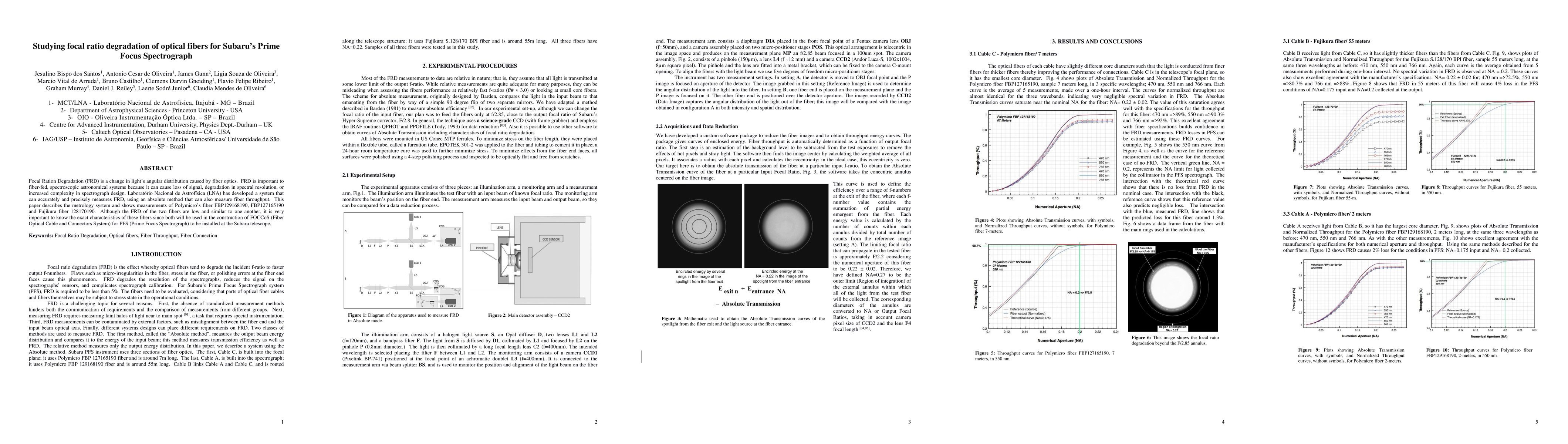 This paper details a metrology system developed by LNA to measure Focal Ratio Degradation (FRD) in optical fibers, focusing on Polymicro and Fujikura fibers. The study highlights the importance of precise FRD measurements for designing the FOCCoS system for the Subaru Prime Focus Spectrograph, despite the low and similar FRD values of the tested fibers.
