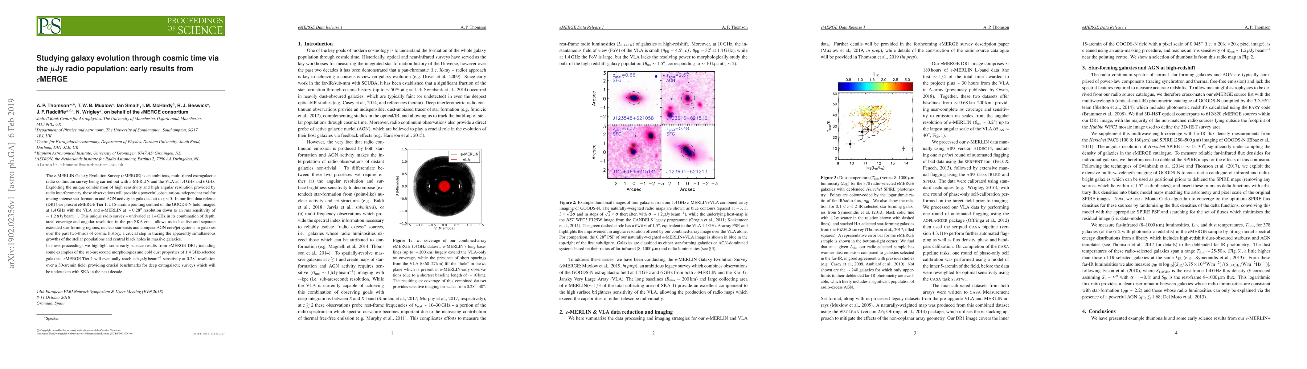 The eMERGE survey uses radio interferometry to study galaxy evolution by tracing star-formation and AGN activity at high redshifts. Early results from DR1 reveal detailed morphologies and cold dust properties of 1.4GHz-selected galaxies, offering insights into the growth of stellar populations and black holes.