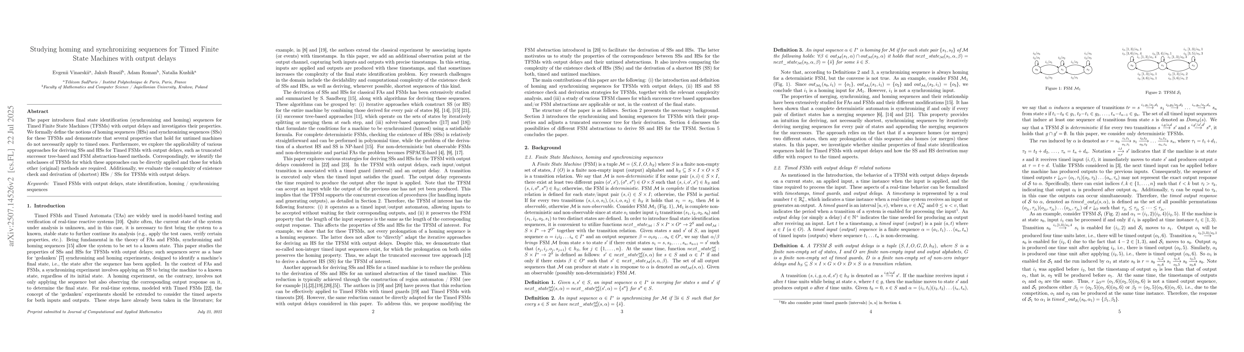 The paper presents formal definitions for homing and synchronizing sequences in TFSMs with output delays, along with novel algorithms and complexity analyses for deriving these sequences.