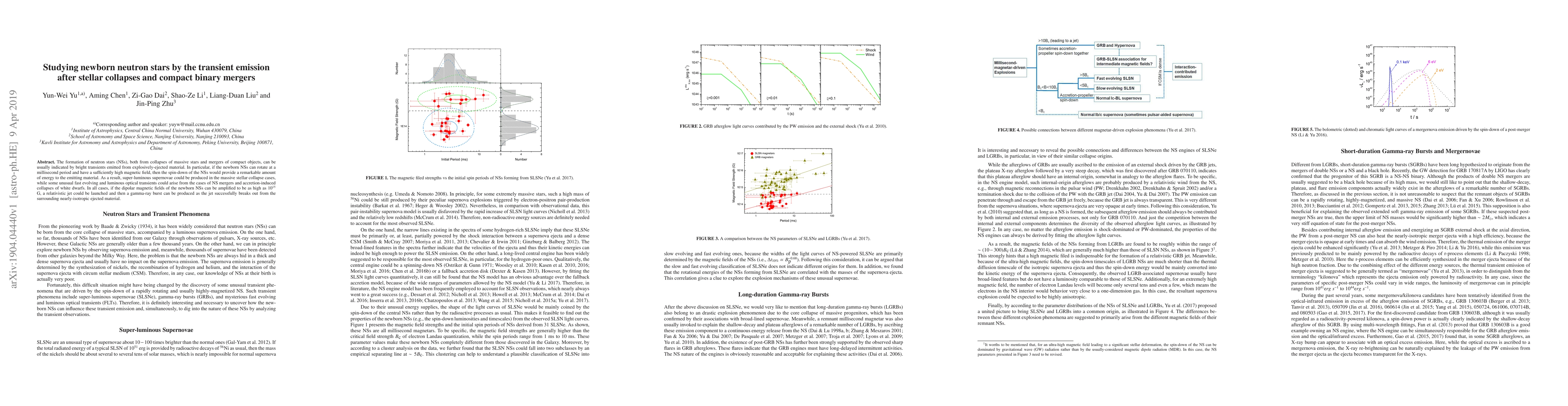 The research explores newborn neutron stars formed from stellar collapses and compact binary mergers, suggesting these events generate bright transients due to ejected material. High-magnetic-field, rapidly-rotating NSs can produce super-luminous supernovae or unusual optical transients, potentially launching relativistic jets and causing gamma-ray bursts upon breaking through ejected material.