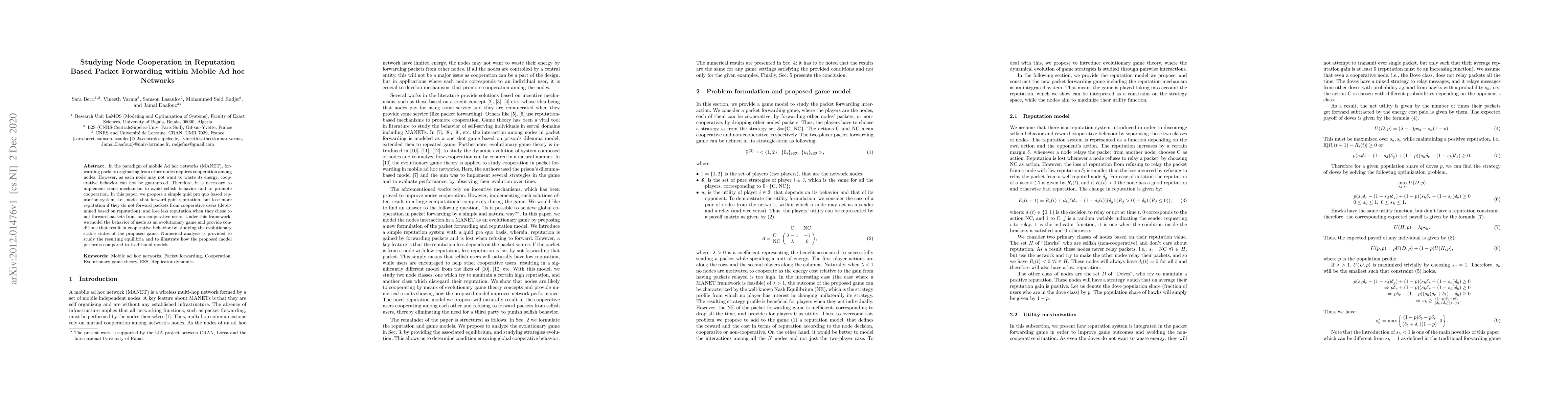 This paper proposes a quid pro quo based reputation system to promote cooperation in mobile Ad hoc networks (MANET) by rewarding nodes that forward packets and penalizing those that fail to forward packets from cooperative users. It models node behavior as an evolutionary game to identify conditions that lead to cooperative behavior and compares the proposed model's performance against traditional methods through numerical analysis.