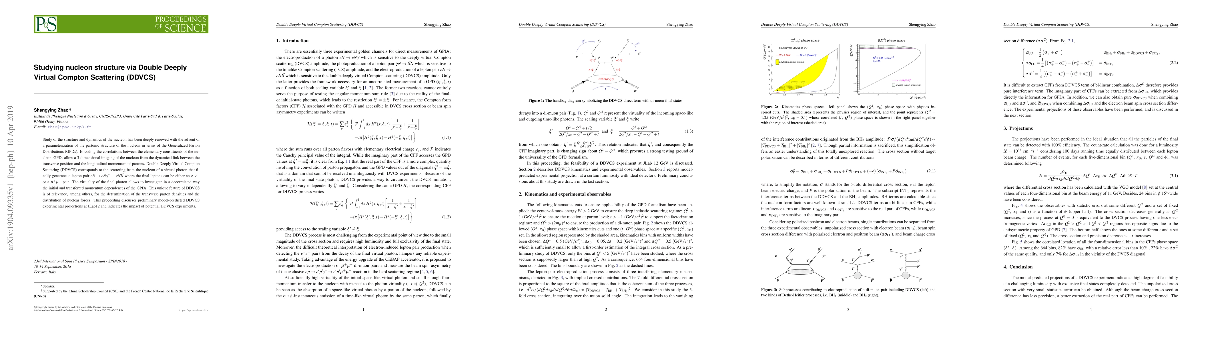 This paper explores the nucleon structure using Double Deeply Virtual Compton Scattering (DDVCS), leveraging Generalized Parton Distributions (GPDs) to provide a 3D imaging of nucleons. DDVCS allows for the investigation of parton dynamics and the determination of transverse parton densities, offering insights into nuclear forces.