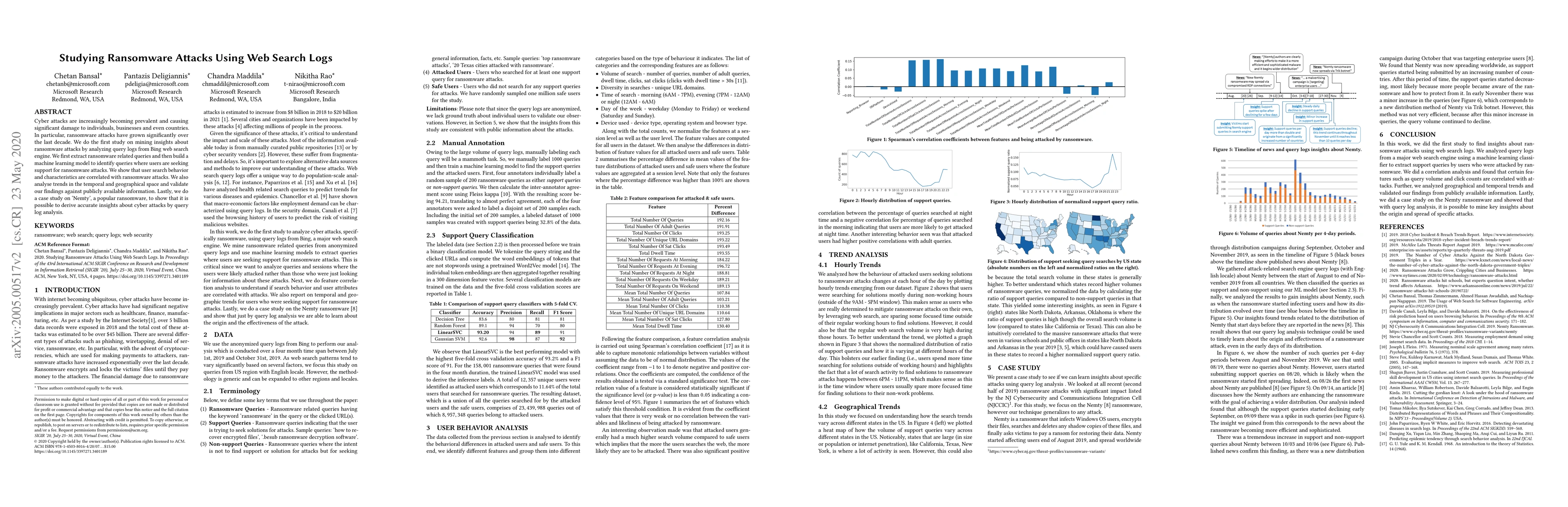 This study analyzes Bing web search logs to extract ransomware-related queries and build a machine learning model to identify user support requests for ransomware attacks, revealing correlations between search behavior and ransomware incidents. The research also examines temporal and geographical trends and validates findings with public data, demonstrating insights through a case study on 'Nemty' ransomware.