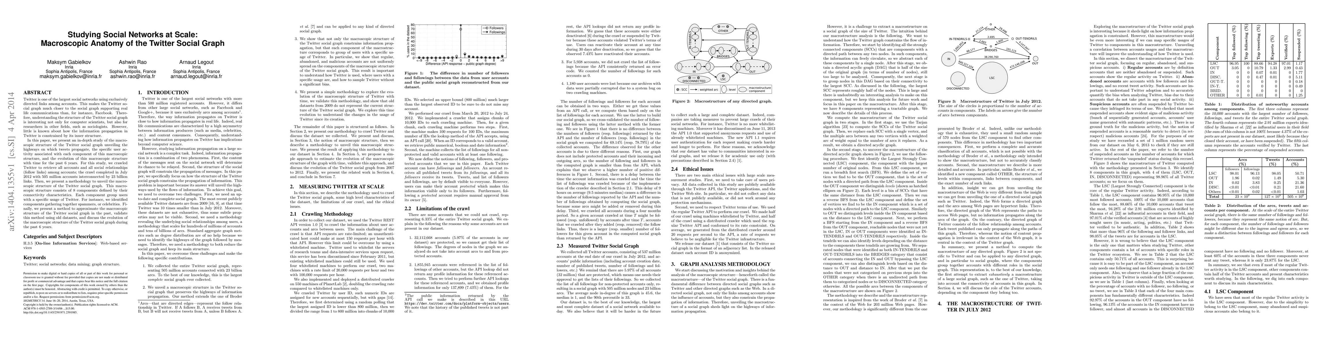 This paper conducts an in-depth analysis of the macroscopic structure of the Twitter social graph, revealing its eight interconnected components and how they evolve over time. The study highlights the distinct user activities and tweet propagation patterns within these components, providing insights into Twitter's unique directed link structure.