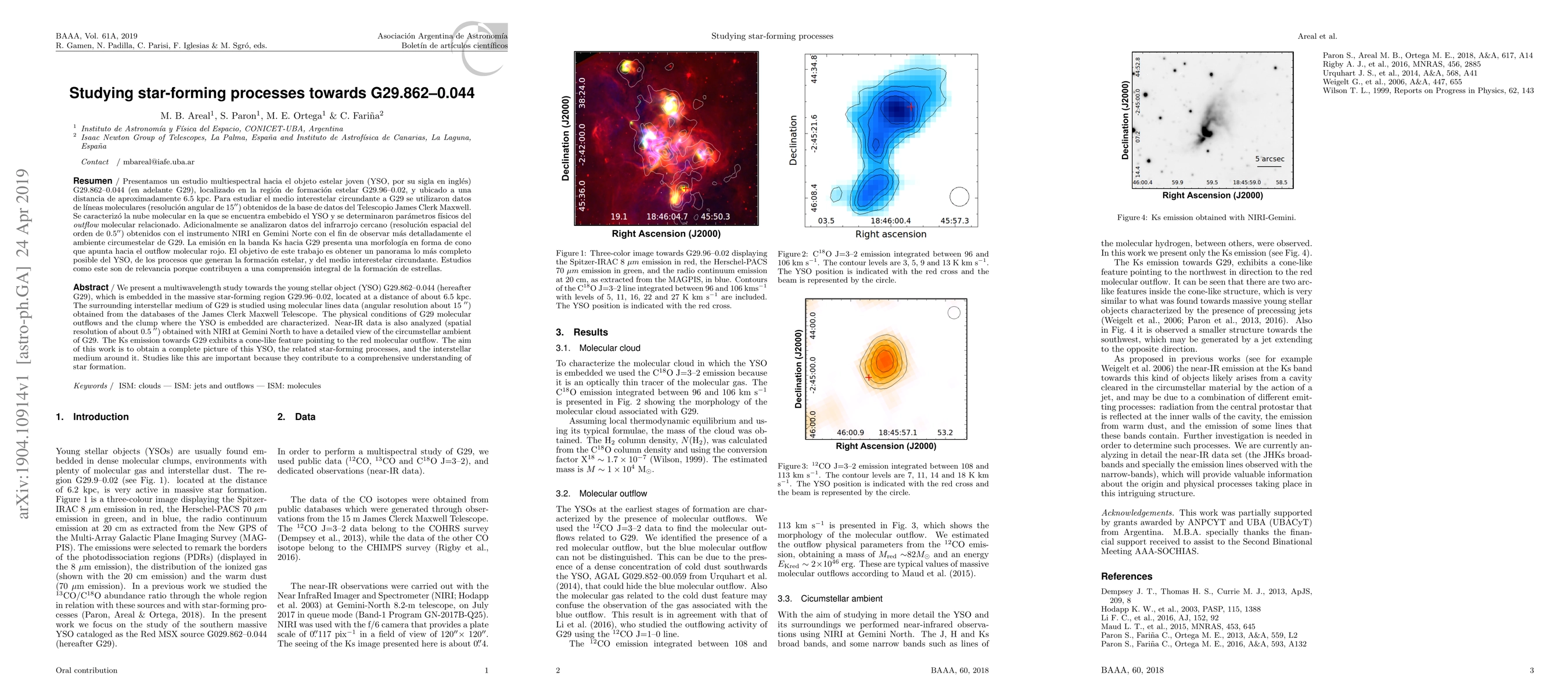 The study utilized multiwavelength data, including molecular lines from the James Clerk Maxwell Telescope (angular resolution ~15'') and near-IR data from Gemini North (spatial resolution ~0.5'') to analyze the young stellar object (YSO) G29.862-0.044 and its surrounding interstellar medium.