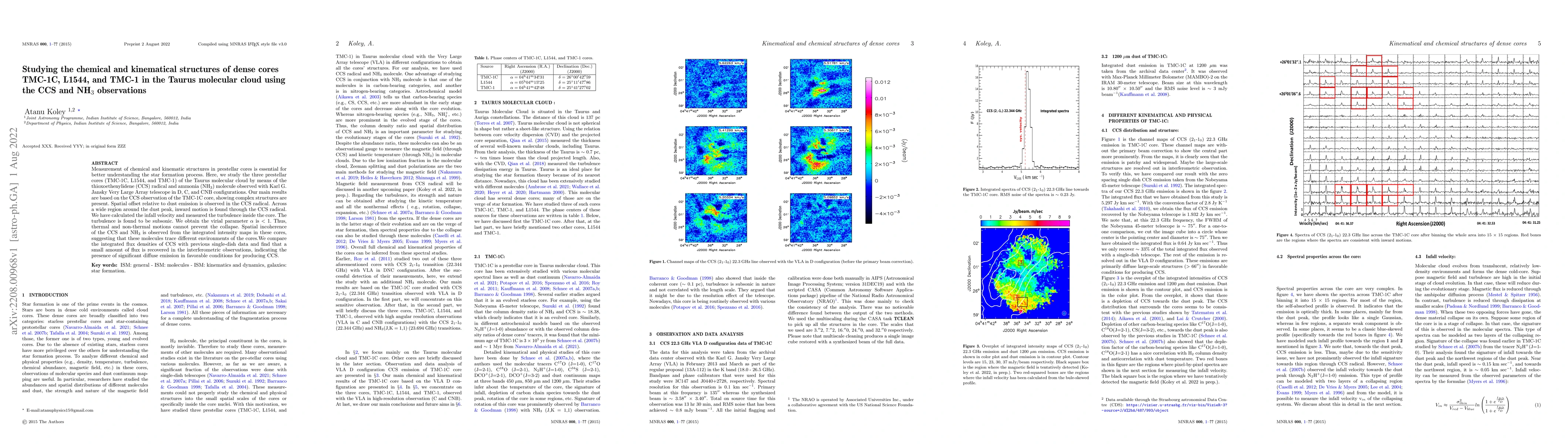 Measurement of chemical and kinematic structures in prestellar cores is essential for better understanding the star formation process. Here, we study the three prestellar cores (TMC-1C, L1544, and TMC-1) of the Taurus molecular cloud by means of the thioxoethenylidene (CCS) radical and ammonia (NH3) molecule observed with Karl G. Jansky Very Large Array telescope in D, C, and CNB configurations. Our main results are based on the CCS observation of the TMC-1C core, showing complex structures are present. Spatial offset relative to dust emission is observed in the CCS radical. Across a wide region around the dust peak, inward motion is found through the CCS radical. We have calculated the infall velocity and measured the turbulence inside the core. The turbulence is found to be subsonic. We obtain the virial parameter {\alpha} is < 1. Thus, thermal and non-thermal motions cannot prevent the collapse. Spatial incoherence of the CCS and NH3 is observed from the integrated intensity maps in these cores, suggesting that these molecules trace different environments of the cores.We compare the integrated flux densities of CCS with previous single-dish data and find that a small amount of flux is recovered in the interferometric observations, indicating the presence of significant diffuse emission in favorable conditions for producing CCS.