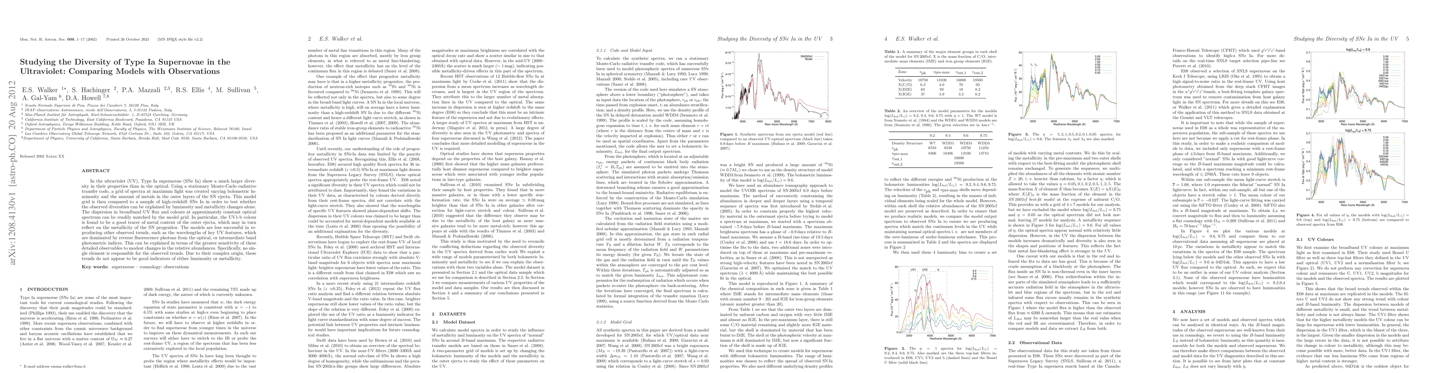 In the ultraviolet (UV), Type Ia supernovae (SNe Ia) show a much larger diversity in their properties than in the optical. Using a stationary Monte-Carlo radiative transfer code, a grid of spectra at maximum light was created varying bolometric luminosity and the amount of metals in the outer layers of the SN ejecta. This model grid is then compared to a sample of high-redshift SNe Ia in order to test whether the observed diversities can be explained by luminosity and metallicity changes alone. The dispersion in broadband UV flux and colours at approximately constant optical spectrum can be readily matched by the model grid. In particular, the UV1-b colour is found to be a good tracer of metal content of the outer ejecta, which may in turn reflect on the metallicity of the SN progenitor. The models are less successful in reproducing other observed trends, such as the wavelengths of key UV features, which are dominated by reverse fluorescence photons from the optical, or intermediate band photometric indices. This can be explained in terms of the greater sensitivity of these detailed observables to modest changes in the relative abundances. Specifically, no single element is responsible for the observed trends. Due to their complex origin, these trends do not appear to be good indicators of either luminosity or metallicity.