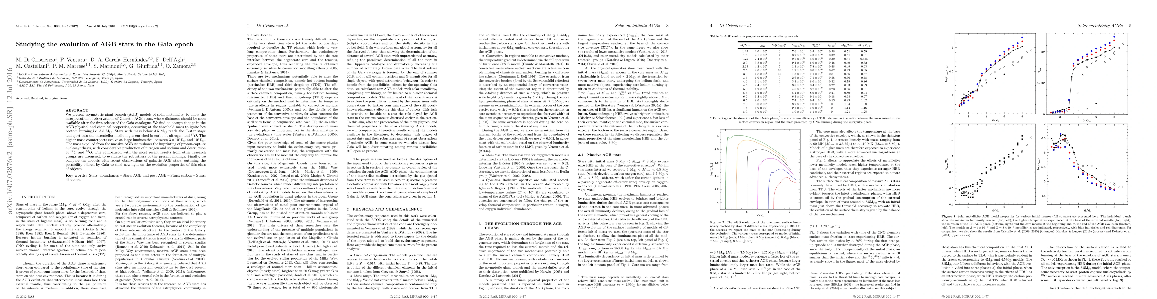 We present asymptotic giant branch (AGB) models of solar metallicity, to allow the interpretation of observations of Galactic AGB stars, whose distances should be soon available after the first release of the Gaia catalogue. We find an abrupt change in the AGB physical and chemical properties, occurring at the threshold mass to ignite hot bottom burning,i.e. $3.5M_{\odot}$. Stars with mass below $3.5 M_{\odot}$ reach the C-star stage and eject into the interstellar medium gas enriched in carbon , nitrogen and $^{17}O$. The higher mass counterparts evolve at large luminosities, between $3\times 10^4 L_{\odot}$ and $10^5 L_{\odot}$. The mass expelled from the massive AGB stars shows the imprinting of proton-capture nucleosynthesis, with considerable production of nitrogen and sodium and destruction of $^{12}C$ and $^{18}O$. The comparison with the most recent results from other research groups are discussed, to evaluate the robustness of the present findings. Finally, we compare the models with recent observations of galactic AGB stars, outlining the possibility offered by Gaia to shed new light on the evolution properties of this class of objects.