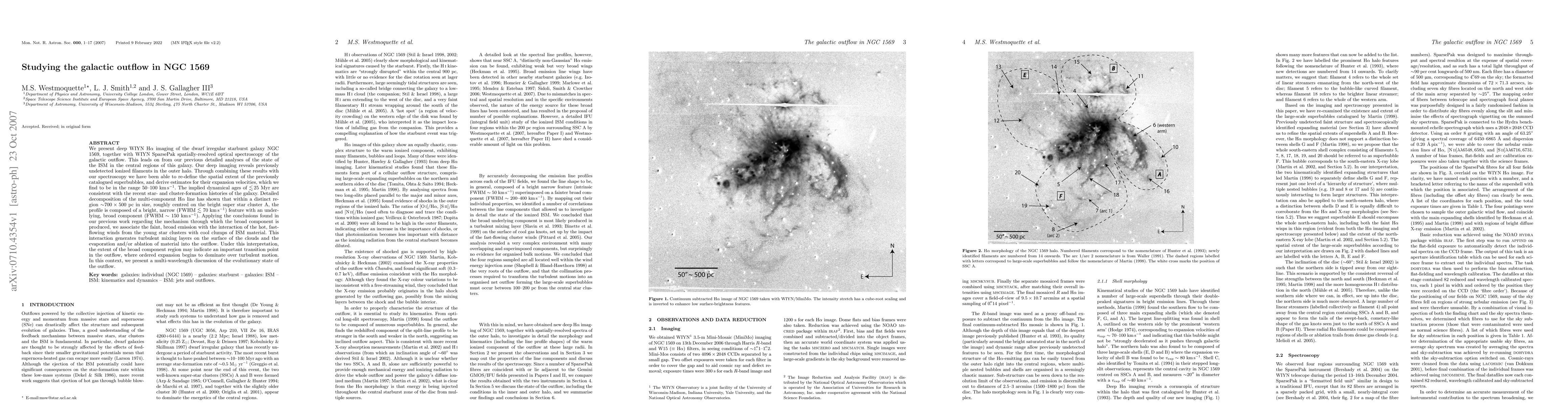 Researchers studied the galactic outflow in NGC 1569, finding previously undetected ionized filaments and measuring expansion velocities of 50-100 km/s, suggesting a transition point in the outflow where ordered motion begins to dominate.