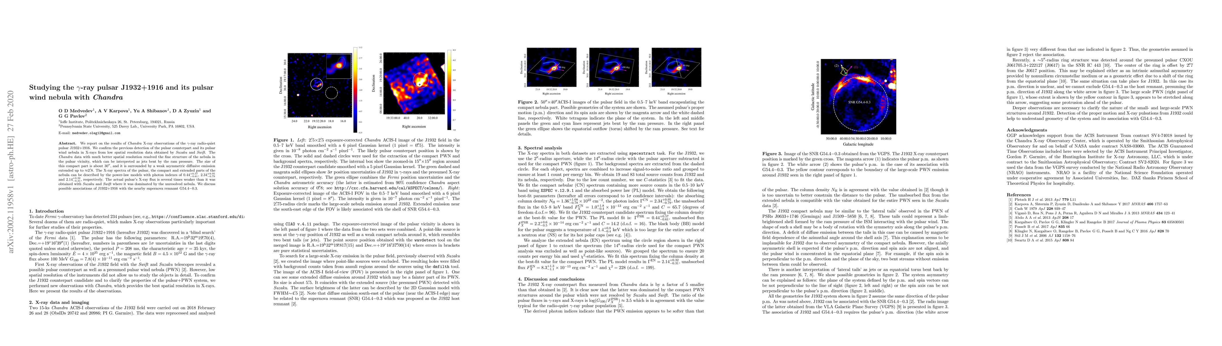 Researchers used Chandra to study the X-ray emission of pulsar J1932+1916 and its associated wind nebula, revealing a compact jet structure surrounded by extended emission, with distinct X-ray spectra for the pulsar, compact nebula, and extended nebula.