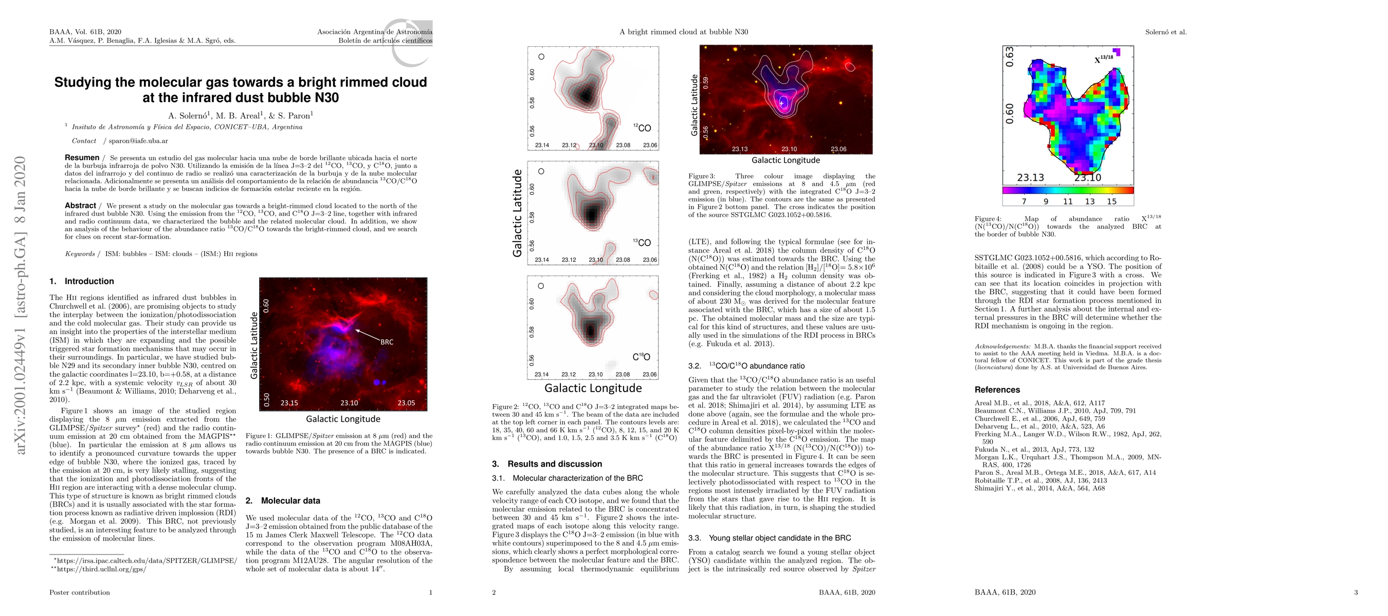 We present a study on the molecular gas towards a bright-rimmed cloud located to the north of the infrared dust bubble N30. Using the emission from the 12CO, 13CO, and C18O J=3-2 line, together with infrared and radio continuum data, we characterized the bubble and the related molecular cloud. In addition, we show an analysis of the behaviour of the abundance ratio 13CO/C18O towards the bright-rimmed cloud, and we search for clues on recent star-formation.