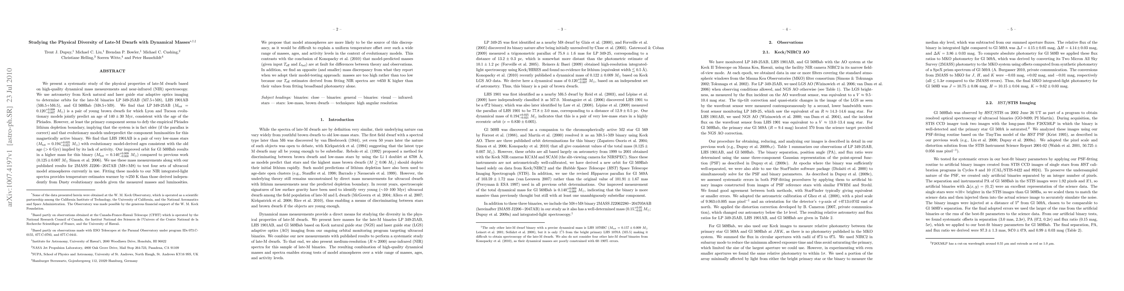 We present a systematic study of the physical properties of late-M dwarfs based on high-quality dynamical mass measurements and near-infrared (NIR) spectra. We use astrometry from Keck NGS and LGS AO imaging to determine orbits for late-M binaries. We find that LP 349-25 (M7.5+M8) is a pair of young brown dwarfs (Mtot = 0.120 Msun) for which Lyon and Tucson evolutionary models jointly predict an age of 140+/-30 Myr. This is consistent with the age of the Pleiades, but at least LP 349-25A defies the empirical Pleiades lithium depletion boundary, implying that the system is in fact older and that evolutionary models underpredict the component luminosities. We find that LHS 1901AB (M6.5+M6.5) is a pair of very low-mass stars (Mtot = 0.194 Msun) with model-derived ages consistent with limits from its lack of activity (> 6 Gyr). Our improved orbit for Gl 569Bab (M8.5+M9) results in a higher mass for this binary (Mtot = 0.140 Msun) compared to previous work (0.125 Msun). We use these masses along with our published results for 2MASS J2206-2047AB (M8+M8) to test four sets of ultracool model atmospheres currently in use. Fitting these models to our NIR integrated-light spectra provides temperature estimates warmer by ~250 K than those derived independently from Dusty evolutionary models given the measured masses and luminosities. We propose that model atmospheres are more likely to be the source of this discrepancy, as it would be difficult to explain a uniform temperature offset over such a wide range of masses, ages, and activity levels in the context of evolutionary models. Our results contrast those of Konopacky et al. as we find an opposite and smaller mass discrepancy from what they report when we adopt their model-testing approach since our Teff estimates from fitting spectra are ~650 K higher than from their fitting of broadband photometry alone.