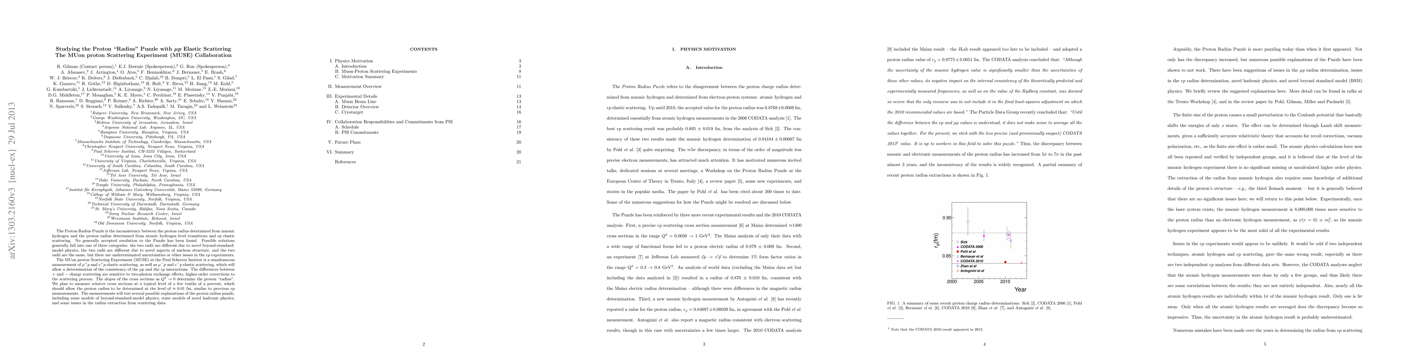 The Proton Radius Puzzle arises from discrepancies between proton radii measured via muonic hydrogen and conventional methods. The MUon proton Scattering Experiment (MUSE) aims to resolve this by measuring \mu^+ p and e^+ p elastic scattering to determine the consistency of \mu p and ep interactions, potentially identifying novel physics or experimental uncertainties.