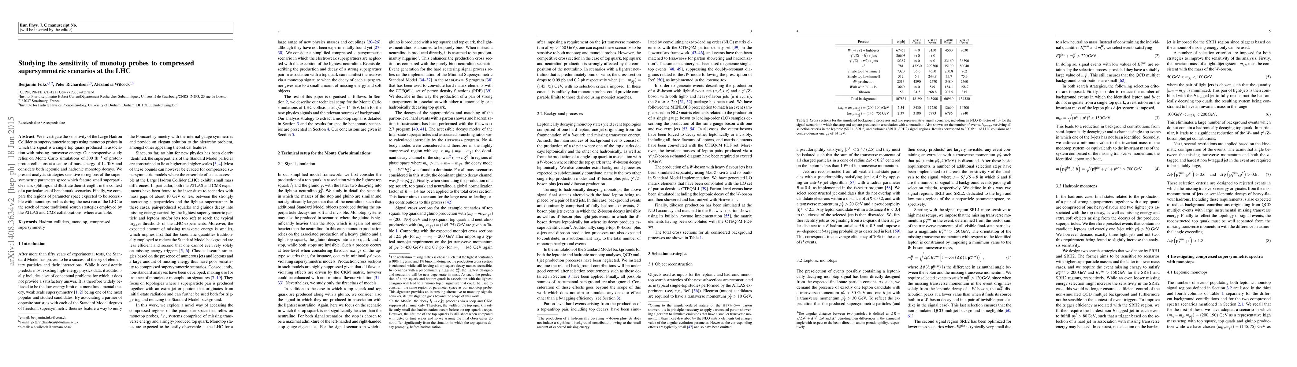 We investigate the sensitivity of the Large Hadron Collider to supersymmetric setups using monotop probes in which the signal is a single top quark produced in association with missing transverse energy. Our prospective study relies on Monte Carlo simulations of 300 invfb of proton- proton collisions at a centre-of-mass energy of 14 TeV and considers both leptonic and hadronic monotop decays. We present analysis strategies sensitive to regions of the supersymmetric parameter space which feature small superparticle mass splittings and illustrate their strengths in the context of a particular set of benchmark scenarios. Finally, we compare the regions of parameter space expected to be accessible with monotops probes during the next run of the LHC to the reach of more traditional search strategies employed by the ATLAS and CMS collaborations, where available.