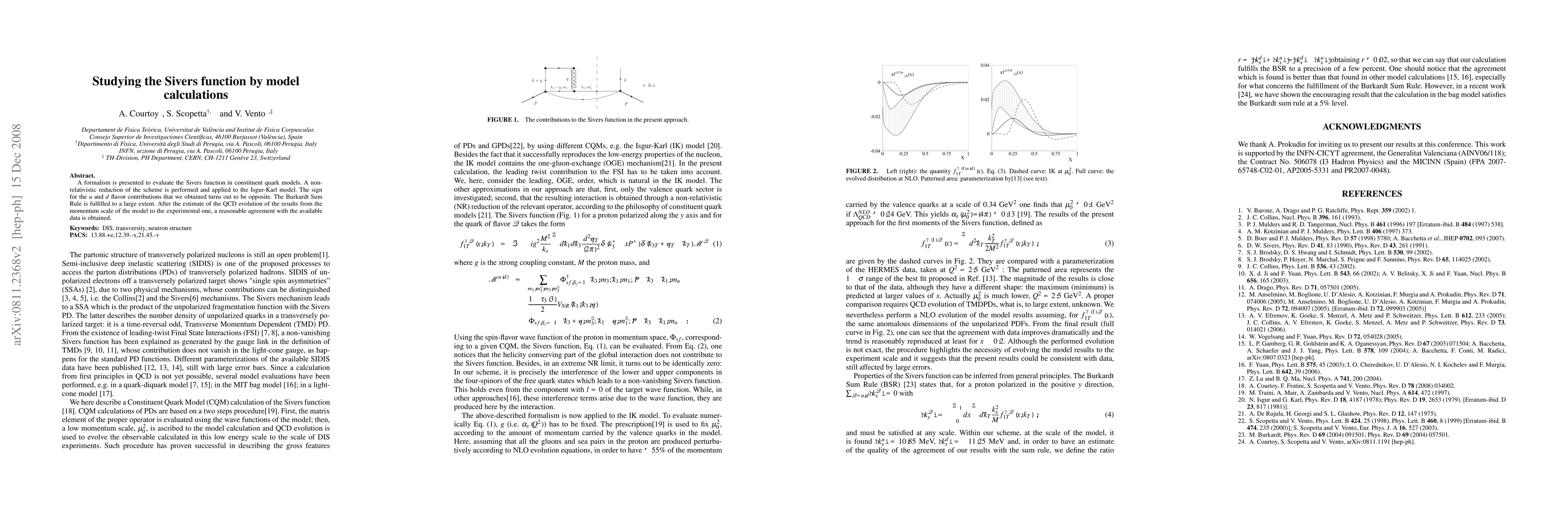 This paper presents a formalism to evaluate the Sivers function in constituent quark models, showing opposite signs for $u$ and $d$ flavor contributions, and achieves reasonable agreement with experimental data after accounting for QCD evolution. The Burkardt Sum Rule is largely fulfilled.