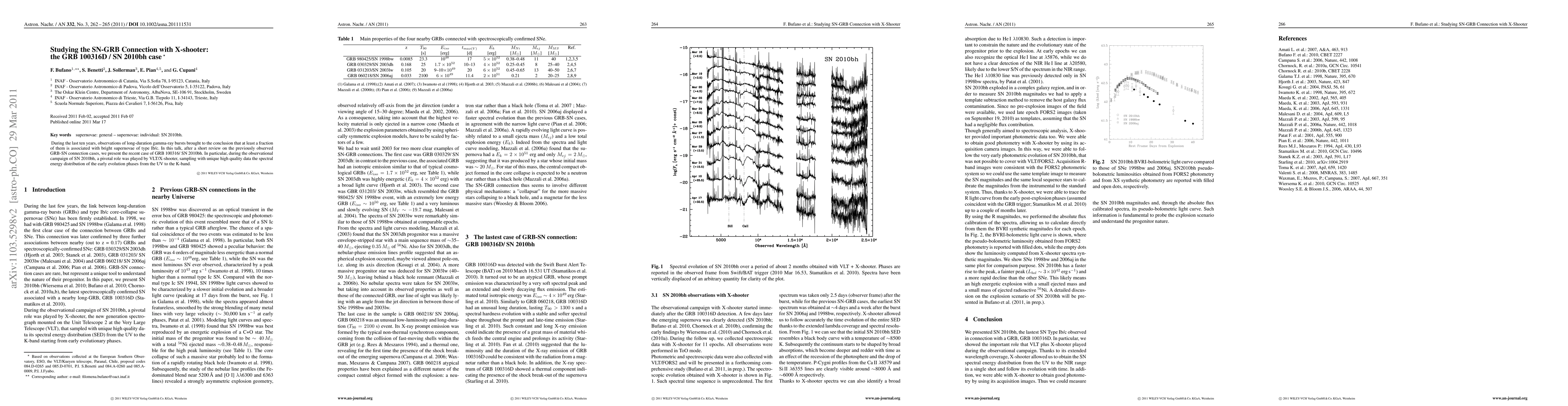 This paper investigates the connection between long-duration gamma-ray bursts (GRBs) and supernovae (SN), focusing on the case of GRB 100316D and SN 2010bh. The VLT/X-shooter instrument provided high-quality data across the spectral energy distribution, revealing significant insights into the early evolution phases of SN 2010bh.
