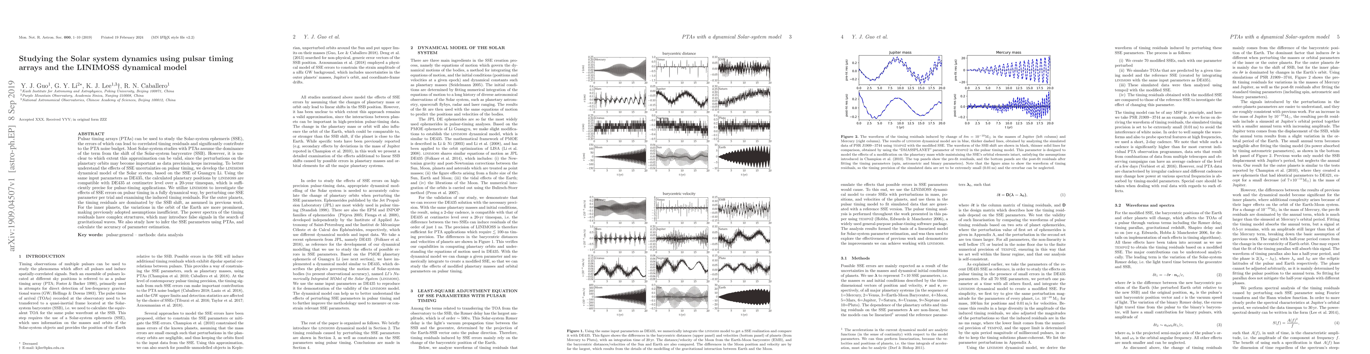 The research develops the LINIMOSS dynamical model of the Solar system based on the SSE of Guangyu Li, using the same input parameters as DE435. It investigates the effects of SSE uncertainties on pulsar timing by perturbing one SSE parameter at a time and examining the induced timing residuals.