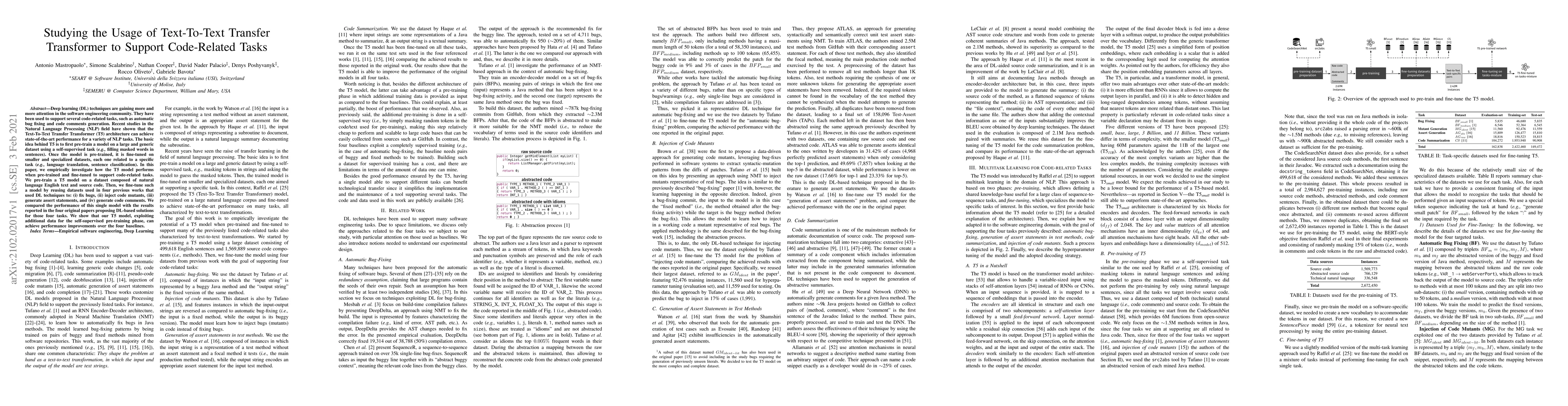 Researchers used a Text-To-Text Transfer Transformer (T5) model to support code-related tasks, achieving performance improvements over existing deep learning-based solutions with additional pre-training data.