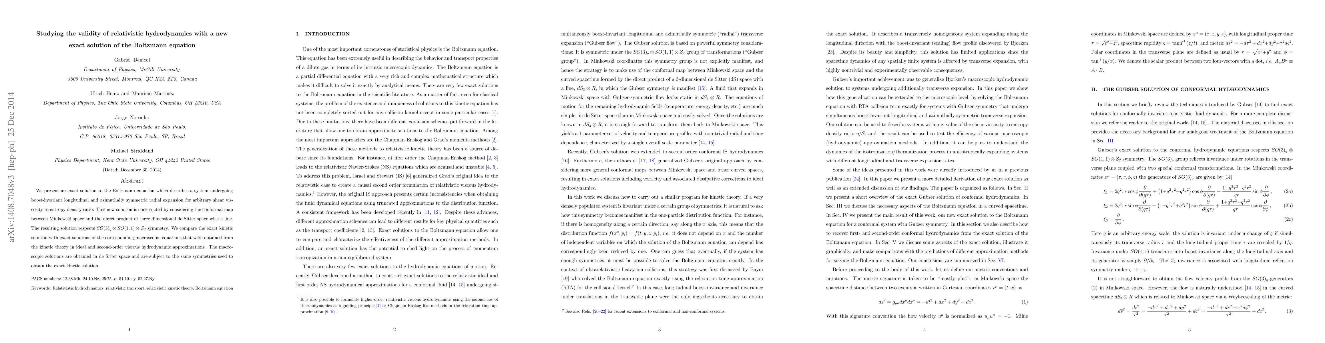 This paper presents an exact solution to the Boltzmann equation for a boost-invariant, radially expanding system with arbitrary shear viscosity, derived through a conformal map. It compares this kinetic solution with macroscopic hydrodynamic solutions in ideal and second-order viscous approximations, highlighting symmetry and validity of relativistic hydrodynamics.