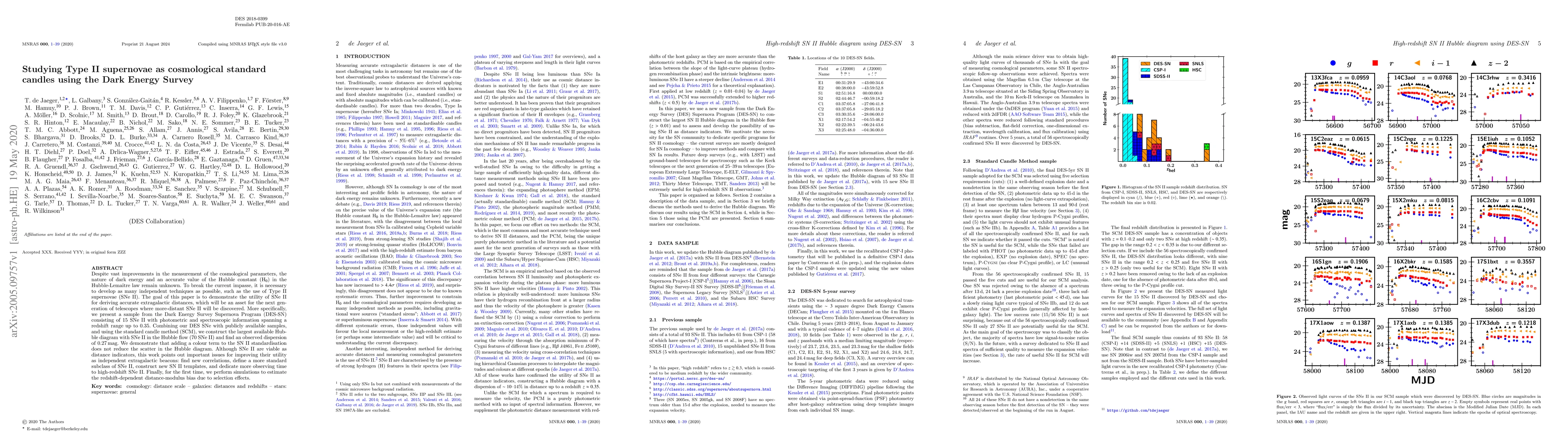 This paper investigates the use of Type II supernovae (SNe II) as cosmological standard candles to measure extragalactic distances, utilizing data from the Dark Energy Survey. The study combines DES-SN data with other samples to construct a Hubble diagram, finding an observed dispersion of 0.27 mag, but notes that SNe II require further improvements to become reliable independent distance indicators.