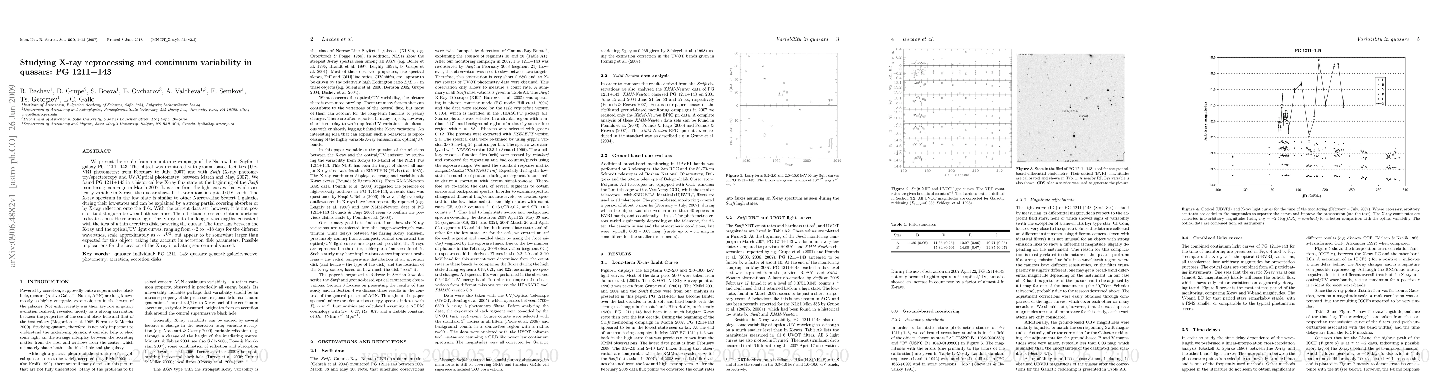 Researchers monitored quasar PG 1211+143's X-ray flux and found it to be violently variable in X-rays, but stable in optical/UV bands. The data suggests possible reprocessing of X-rays into longer wavelengths through a thin accretion disk.
