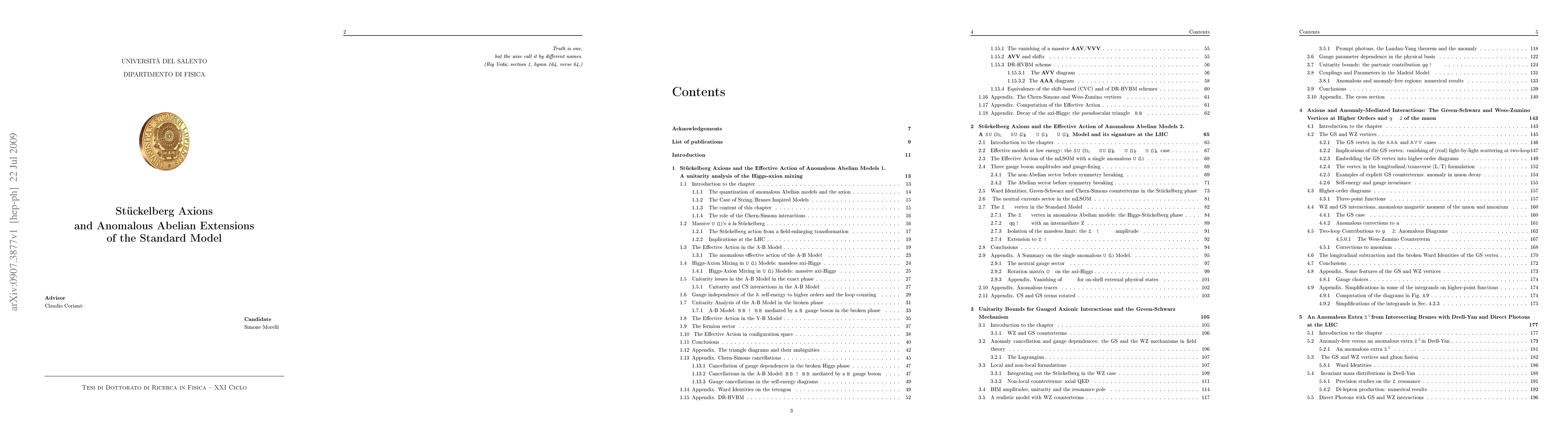 This thesis work analyzes basic field theoretical aspects of a class of models motivated by orientifold vacua of string theory and some of their phenomenological applications at the Large Hadron Collider. They extend the gauge structure of the Standard Model by anomalous extra U(1) symmetries, which involve Stuckelberg axions for anomaly cancellation and are accompanied by Chern-Simons interactions. In particular, these effective actions are characterized by a physical pseudoscalar (the axi-Higgs) in the CP-odd spectrum, which has the properties of a generalized Peccei-Quinn axion, with independent mass and couplings to the gauge fields. Amplitudes mediated by anomalous gauge interactions are studied at the new collider in some specific channels such as Drell-Yan and double prompt-photon and shown to be small. Finally, we address the problem of the relation between the Green-Schwarz and the Wess-Zumino mechanism(s) for anomaly cancellations in effective lagrangeans involving anomalous gauge interactions, with their gauge symmetry restored either with local or non-local counterterms and identify some unitarity bounds in the Wess-Zumino case. These are due to the presence of anomaly poles in scattering amplitudes mediated by the anomaly (BIM amplitudes) and whose cancellation requires necessarly non-local counterterms. While the axi-Higgs appears in the Wess-Zumino case, two axion-like particles are needed for the cancellation of the gauge anomalies at all scales, one of them being a ghost.