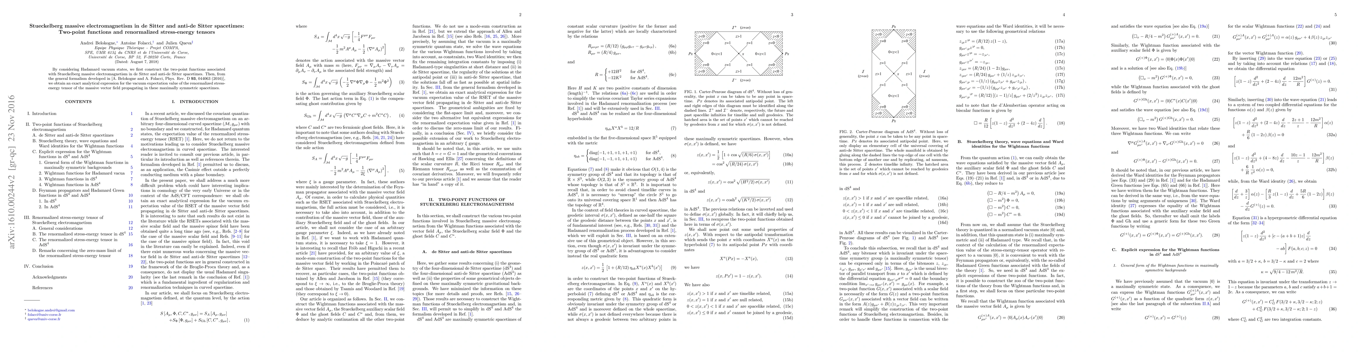 This paper constructs two-point functions for Stueckelberg massive electromagnetism in de Sitter and anti-de Sitter spacetimes using Hadamard vacuum states. It then derives an exact analytical expression for the vacuum expectation value of the renormalized stress-energy tensor for the massive vector field in these maximally symmetric spacetimes.