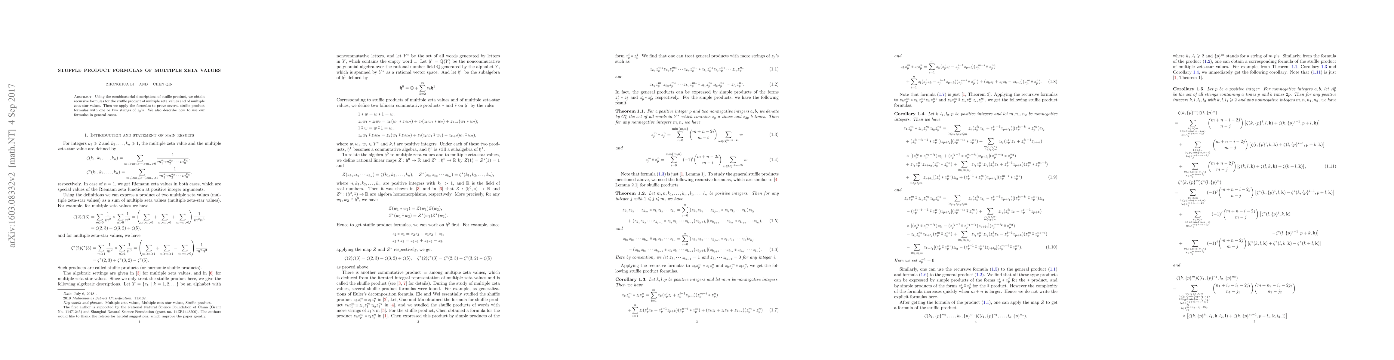 This paper develops recursive formulas for the stuffle product of multiple zeta values and multiple zeta-star values, and applies these formulas to derive specific stuffle product formulas involving $z_p$ strings, while also outlining their general applicability.