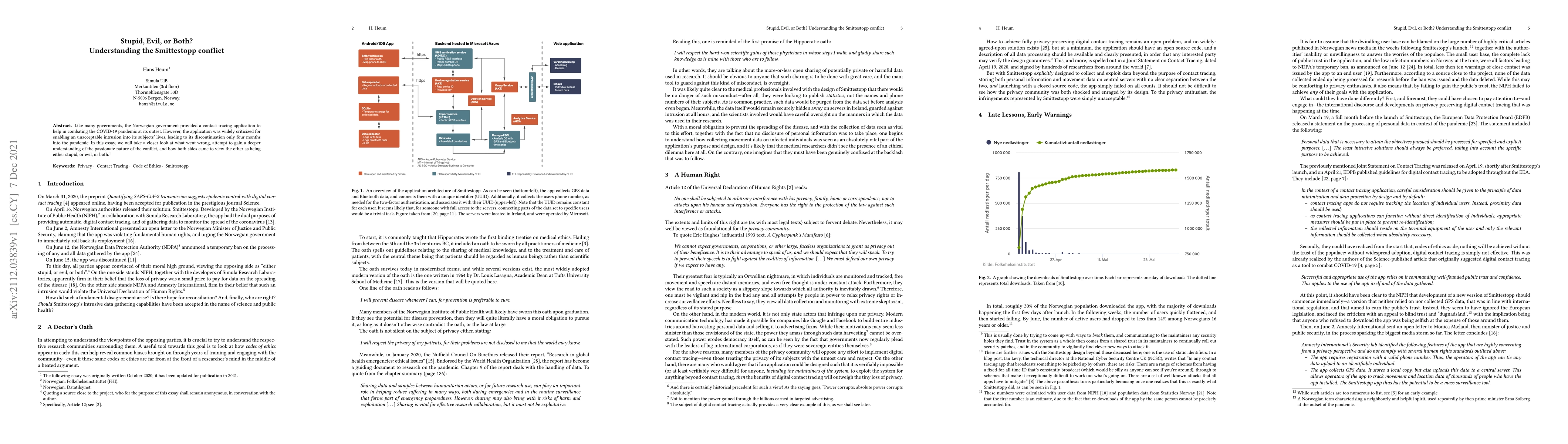 Like many governments, the Norwegian government provided a contact tracing application to help in combating the COVID-19 pandemic at its outset. However, the application was widely criticized for enabling an unacceptable intrusion into its subjects' lives, leading to its discontinuation only four months into the pandemic. In this essay, we will take a closer look at what went wrong, attempt to gain a deeper understanding of the passionate nature of the conflict, and how both sides came to view the other as being either stupid, or evil, or both.