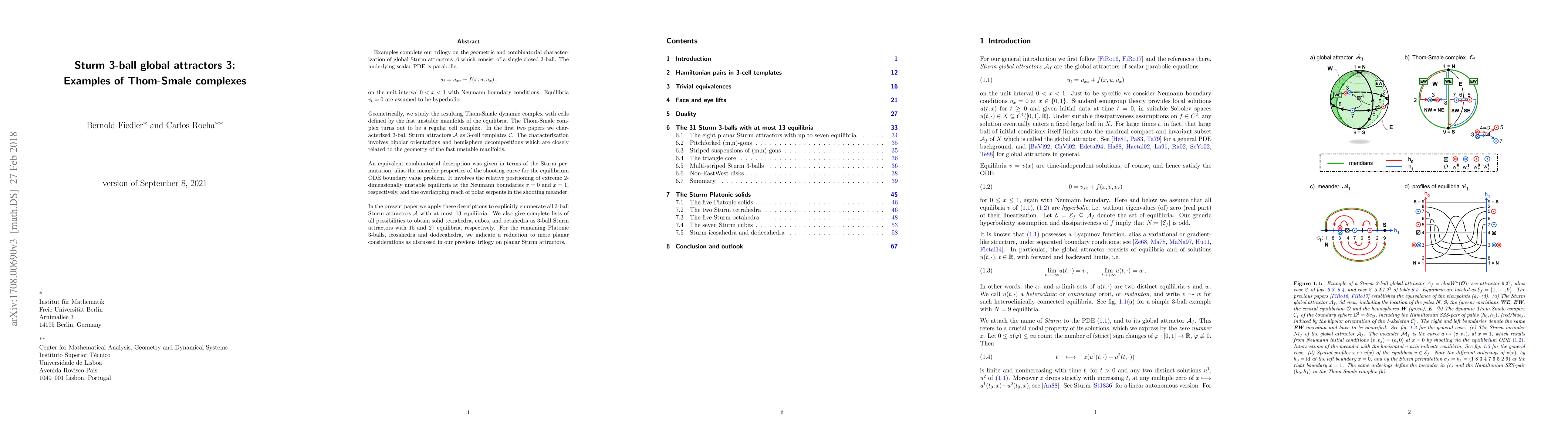 Researchers have characterized global Sturm attractors as geometric structures derived from parabolic partial differential equations, specifically for 3-ball Sturm attractors with at most 13 equilibria, and provide combinatorial descriptions of these attractors.
